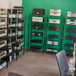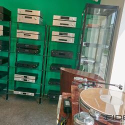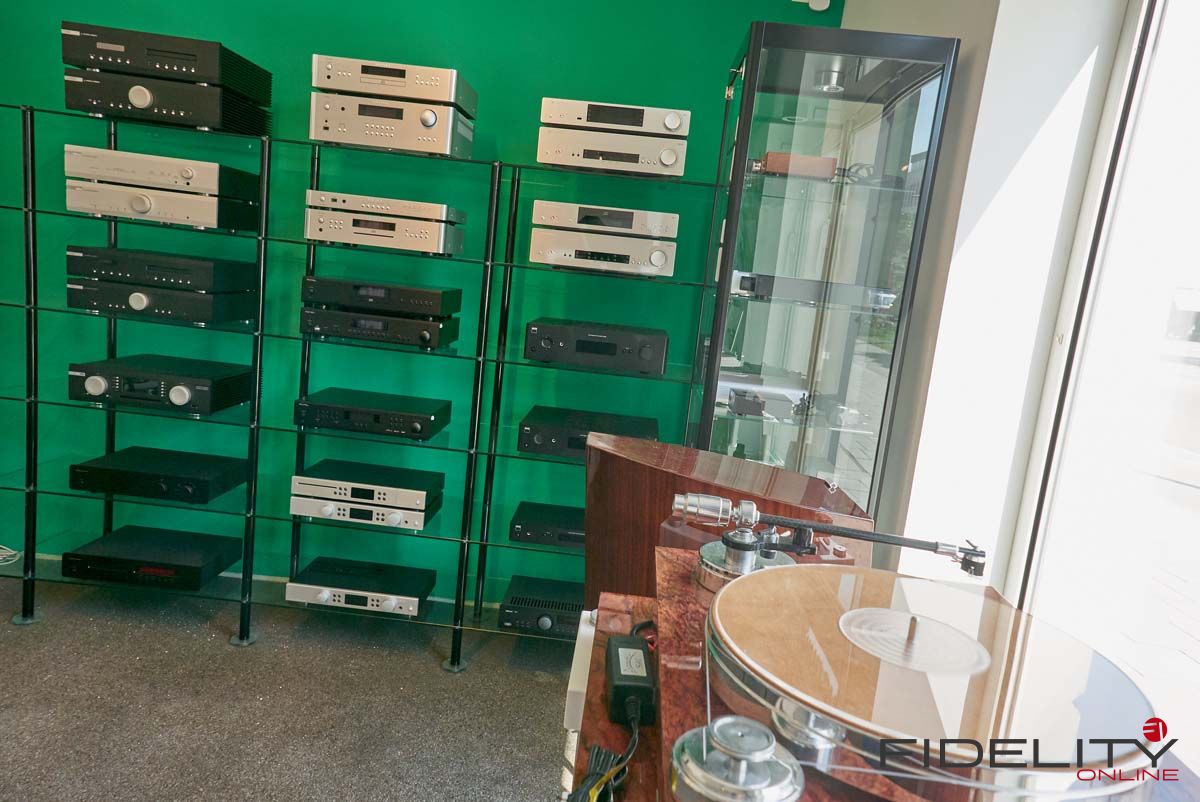 In dem übersichtlicheren, helleren und akustisch deutlich besseren Ladengeschäft an einer viel befahrenen Straße, zeigen sich edle Geräte von Accuphase und AVM über Clearaudio, McIntosh, Musical Fidelity und NAD bis T+A, alles ist blitzblank geputzt und ordentlich in Regalen ausgestellt. Wer im vorbei gehen einen Blick in eins der Schaufenster wirft, sieht auffallend viele CD-Player und Plattenspieler. Eine HiFi-Anlage braucht mindestens eine ordentliche Quelle, findet Herr Heisig.