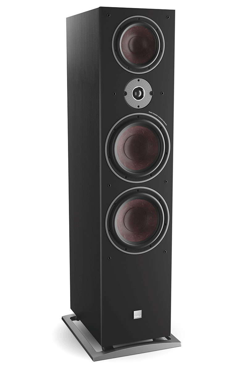 Fast 1,20 Meter hoch und 37 kg schwer, repräsentiert die DALI OBERON 9 ein Monument unter den 800-Euro-Standboxen. Als hoch belastbares Drei-Wege-System ist sie somit der perfekte Lautsprecher für größere bis sehr große Wohnräume und Heimkinos. Den respektablen Schalldruck von bis zu 113 Dezibel erzeugen zwei riesige Tieftöner mit einem Durchmesser von jeweils 230 mm, ein 175 mm großer Mitteltöner sowie eine 29 mm große Gewebe-Hochtonkalotte. Die drei Konustreiber verfügen dabei über Membranen aus der DALI-typischen rötlichen Mixtur aus Zellstoff und Holzfasern. Eine unregelmäßige Oberflächenstruktur sowie die spezielle Beschichtung verhelfen den Chassis zu exzellenten akustischen Eigenschaften. Eine besonders verlust- und verzerrungsarme Wiedergabe verspricht zudem das im Antrieb der Konustreiber eingesetzte patentierte Magnetmaterial SMC.
