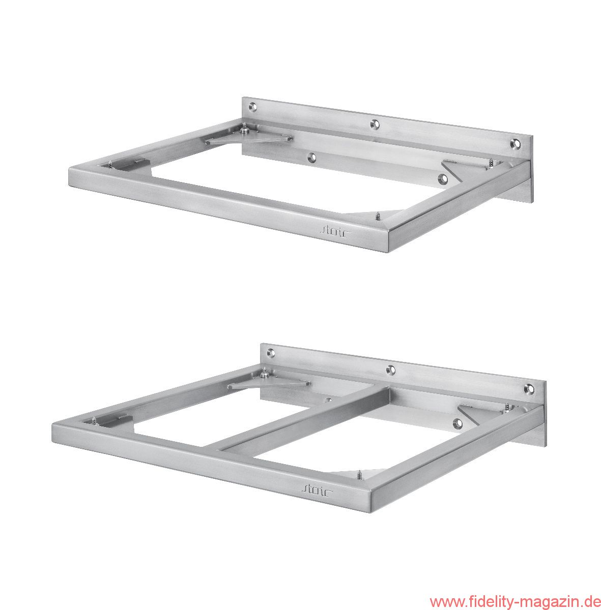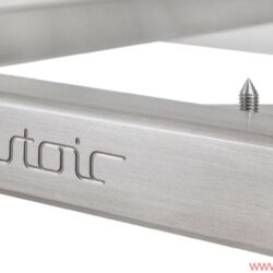 Als „unerschütterliche“ Wandhalterung zum effizienten Schutz vor Vibrationen und Resonanzen vereint Stoic wichtige Eigenschaften, die für eine einwandfreie Musikwiedergabe unerlässlich sind. Die Halterung entkoppelt HiFi-Geräte vollständig und sicher von schwingenden Fußböden. Der mit Sand gefüllte Metallrahmen vernichtet durch seine ungeheure Masse Vibrationen schon im Ansatz, genauso wie der Einsatz von resonanzarmen Materialien wie Naturschiefer oder Multiplex-Holz.