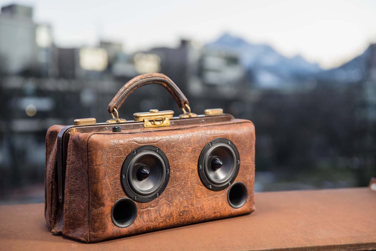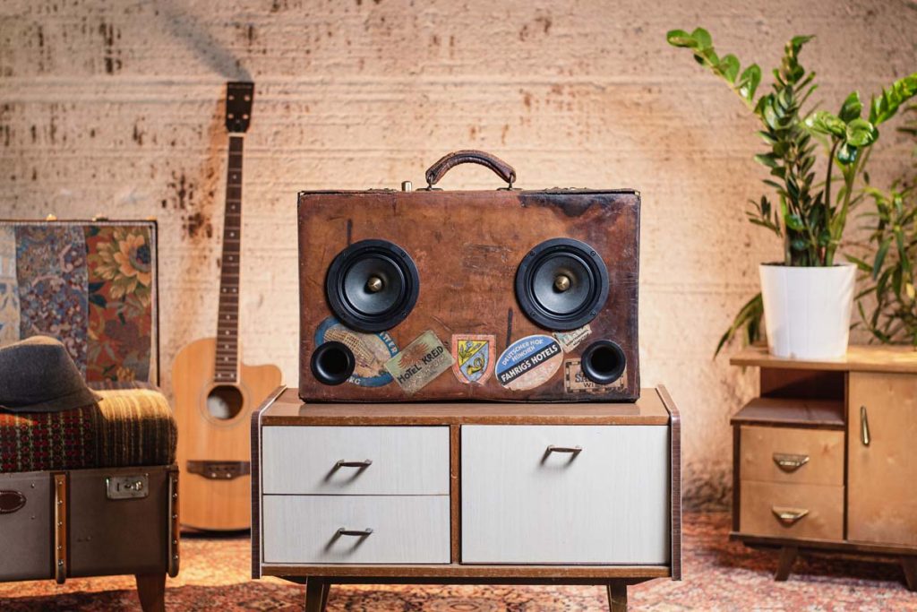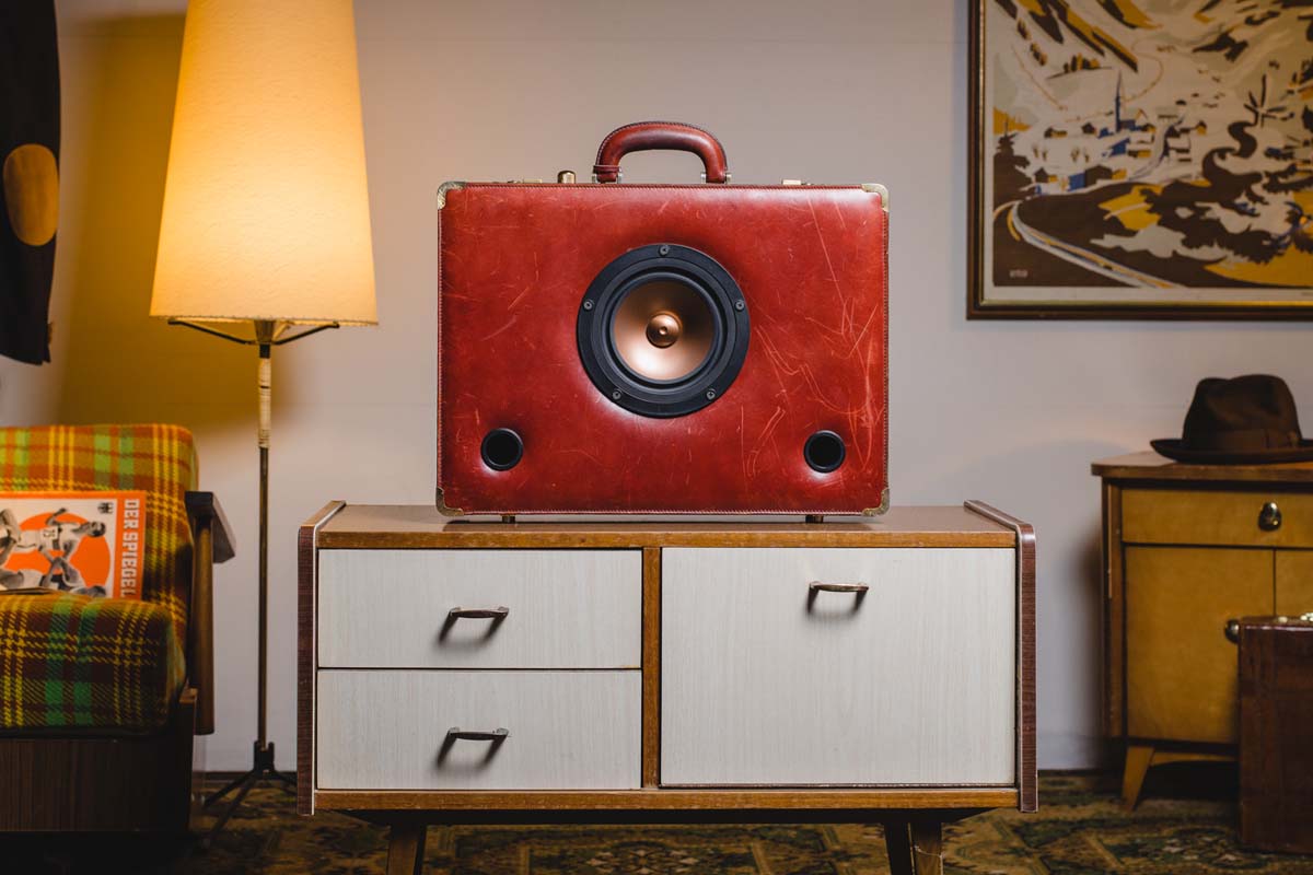 Originale Vintage-Koffer dienen als Gehäuse für moderne Audiotechnik. Über 18 Jahre Erfahrung im Lautsprecherbau stecken in jedem Koffer, der die Manufaktur verlässt. Das Ergebnis spricht für sich – und kann sich hören lassen.