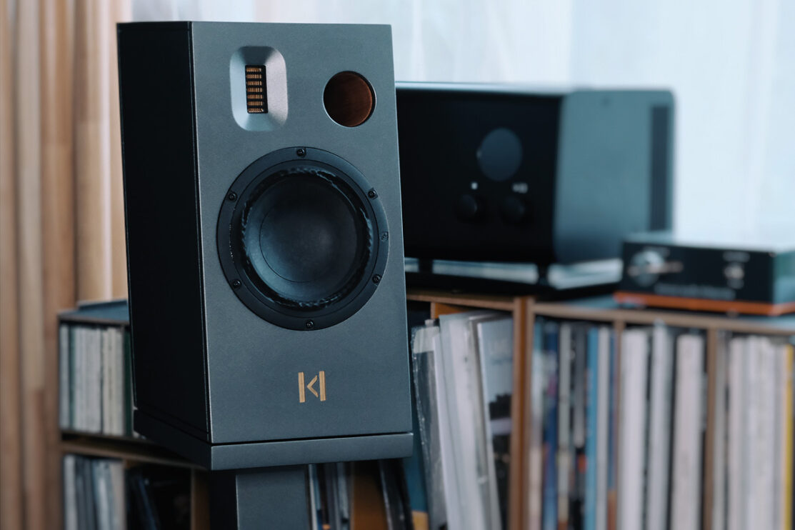 Im Zentrum der Vorführung steht die Kompaktlautsprecherbox Mimi von Kroma Atelier. Laut Hersteller soll das Modell bis 31 Hz hinabreichen und eine „harmonisch und fließend“ abgestimmte Wiedergabe mit hoher tonaler Treue ermöglichen. Die Lautsprecher werden auf passenden Ständern betrieben.
