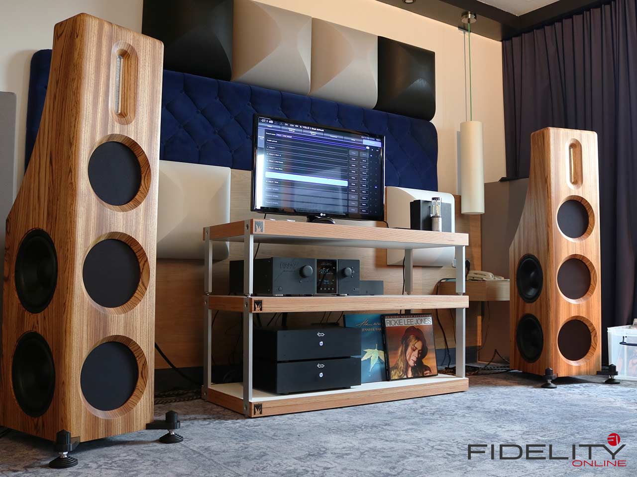 Gleiches galt für die elf großen Säle im Erdgeschoss und in der ersten Etage. Die wurden für Konferenzen optimiert, was sich auch bei Hörvorführungen bemerkbar macht: Gute Stimmpräsenz und geringe Nachhallzeiten. Davon profitierte beispielsweise FinkTeam aus Essen, das seine Borg präsentierte. Der kolossale Zweiwegler, der übrigens von HiFi-Koryphäe Ken Ishiwata vorgeführt wurde, schaufelte unerhörte Energie in den riesigen Raum. Ebenso beeindruckend wirkten die Vorführungen von Naim, Krell, Avantgarde Acoustic, die überaus musikalische Performance von Audio Physic oder Melco, die ebenfalls in den großen Salons gastierten.