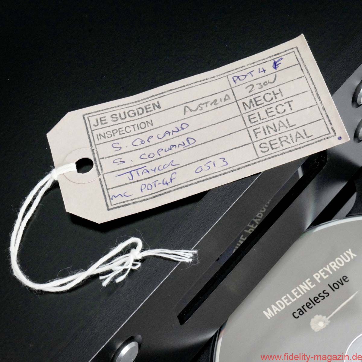 Was unmittelbar auffällt, ist ein sich ganzheitlich der Musik annehmender, auf die innere Spannung in den Tönen zielender Charakter. Man höre über den PDT-4F natürliche Instrumente oder Stimmen, also nicht synthetische, sondern lebendige, mit Gefühl aufgeladene Klänge. Der Engländer stellt sie in ein räumlich ungemein stabiles Panorama und erschafft so die Grundlage für einen einmalig atmenden, direkt die Emotion ansprechenden Musikfluss. Ich meine die Tiefe eines Violintons, das Leuchten eines Klaviersaitenanschlags. Der Fokus im Vortrag des Sugden ist komplett bei der Musik. Dass der Bass überreich an Farben ist und felsenfest im Raum steht – man nimmt’s hin, so ist die Aufnahme, bravo! Der CD-Player? Dass er fein auflöst, Räume plastisch zeichnet, mitreißend dynamisch agiert – darauf muss man sich schon konzentrieren, denn die Meisterschaft in Einzeldisziplinen pinnt sich der PDT-4F nicht neonblinkend auf die Brust. Bei ihm ist alles eins. Musik eben.