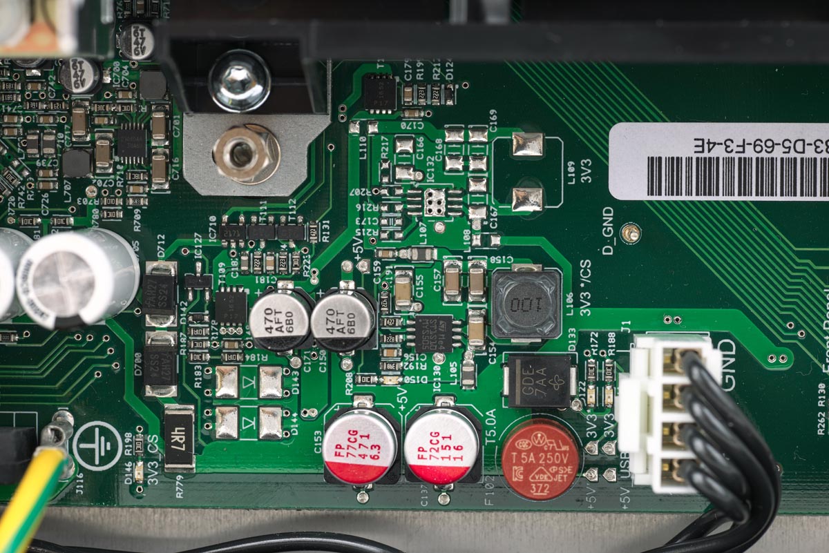 Auf der Frontplatte erkennen wir neben dem großen, angenehm kontrastreichen und scharfen Display die Schublade des integrierten CD-Laufwerks sowie die zahlreichen Funktions- und Steuertasten. Über die Schnellauswahltasten „SCL/USB“, „DISC/BT“, „RADIO“ und „INPUT“ lässt sich entsprechend der eingebauten Signalempfangsmodule die gewünschte Quelle auswählen. Als vielseitiger Vielspieler verfügt der MP 8 – neben den eingangs aufgezählten Modulen – zusätzlich über einen Digitaltuner mit FM, FM-HD und DAB+-Wiedergabe, zudem ist sein HiRes-Streaming-Client mit Internetradio und Musikdiensten wie Tidal, Deezer und Qobuz bereit zur Anbindung an das heimische Netzwerk via LAN oder WLAN. Zusätzliche und hochwillkommene Konnektivität schafft das „Digital Connection Board“ für externe Digitalquellen, die entweder über USB-Ports oder die drei S/PDIF-Eingänge – zweimal elektrisch/koaxial, einmal optisch – Anschluss finden.
