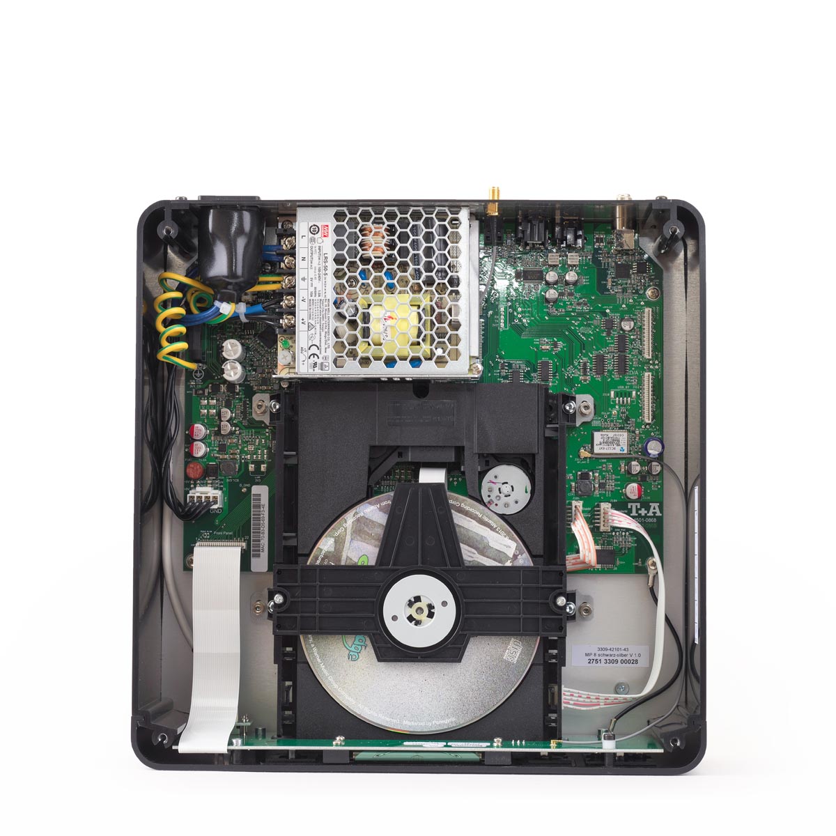 Wer direkt loslegen möchte, der wird den MP 8 zunächst als CD-Spieler einsetzen. Das CD-Laufwerk verdient einige Bemerkungen, denn T+A hat es geschafft, das Laufwerk eigener Entwicklung dank kompakter Bauweise und schwimmender Lagerung in dem angesichts der Ausstattung doch recht engen Gehäuse unterzubringen. Der Hersteller betont, dass dieses Laufwerk dank sehr kurzer Zugriffszeiten und einer hervorragenden Fehlerkorrektur beste CD-Wiedergabe biete. Nun, wir werden das später selbst nachhören.