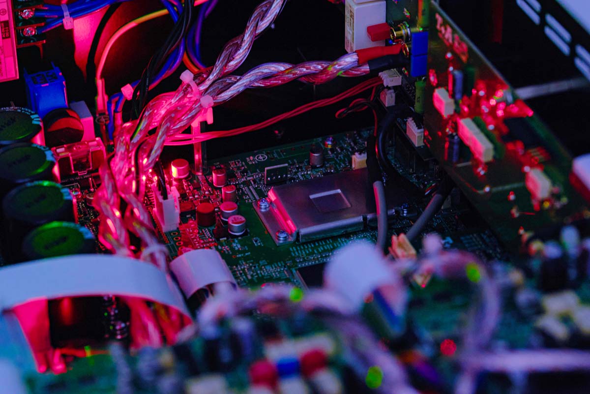 Das gilt auch für die stabilen Lautsprecheranschlüsse, die Bananenstecker, Kabelschuhe oder lose Kabelenden akzeptieren. Versorgt werden sie von einem Endverstärker, dessen Schaltungstopologie in der Eingangsstufe auf einem Kaskoden-Differenzverstärker basiert. Die Schaltung wird mit JFET-Transistoren diskret aufgebaut und kommt ohne integrierte Operationsverstärker aus. Es stehen beachtliche 140 Watt an 8 Ohm und 250 Watt an 4 Ohm zur Verfügung, von denen man zu Recht annehmen kann, dass sie wirklich jeden Lautsprecher an die sprichwörtliche Kandare nehmen. Die nahezu verdoppelte Ausgangsleistung bei halbiertem Widerstand deutet schon darauf hin, dass das Netzteil „bretthart“ sein muss. So ist T+A besonders stolz auf sein selbst entwickeltes Hochfrequenz-Sinusnetzteil, das dem Vernehmen nach die klanglichen Vorteile von Trafonetzteilen mit der Stabilität von Schaltnetzteilen vereinigen soll. Und schließlich verfügt der T+A R 2500 R, um einen Wärmestau der Endstufe insbesondere bei den wetterbedingt immer öfter auftretenden hohen Temperaturen zu vermeiden, auch über einen nicht ganz lautlosen Ventilator, den man aber am Hörplatz nicht mehr wahrnehmen kann.