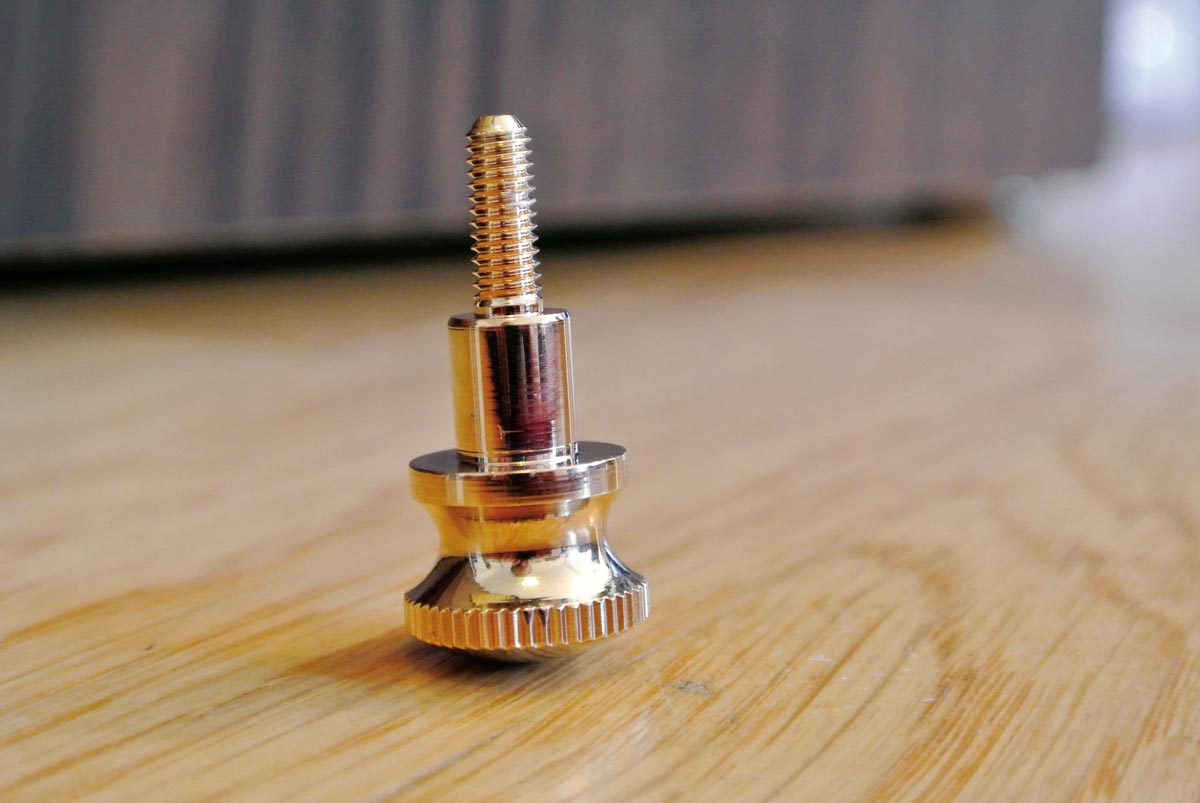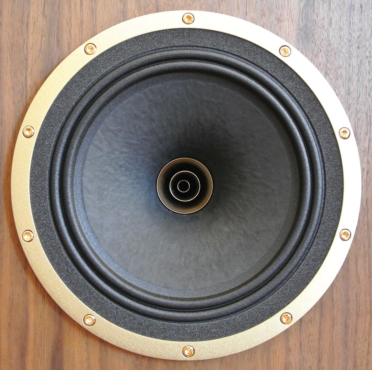 Fangen wir oben an. Der Dual-Concentric-Treiber ist ein koaxiales Zweiwege-Chassis, bestehend aus einem 10-Zoll-Tiefmitteltöner mit steifer Pappmembran sowie einem innen liegenden Eineindrittel-Zoll-Hochtonlautsprecher mit einer kurzen, tulpenförmigen Hornführung, der ab einer vergleichsweise niedrigen Trennfrequenz von 1300 Hertz übernimmt. Apropos Frequenzweiche– diese bietet mehrere Anpassungsmöglichkeiten: Über das im vorletzten Absatz erwähnte metallene Schraubfeld (so nenne ich es mal in Entsprechung zu dem im Tonstudio üblichen Begriff Steckfeld) kann die tonale Präsenz des Hochtonbereichs in je zwei 1,5-dB-Schritten angehoben oder abgesenkt werden. Hierzu wird einfach die Rändelschraube aus dem mittleren Loch – welches die lineare Einstellung repräsentiert – herausgedreht und dann in eines der anderen Löcher geschraubt. Ungewöhnliche Sache – und ob das im Sinne des störungsfreien Signalflusses so richtig optimal ist, möchte ich bezweifeln, schließlich muss man im Bereich der Schrauben und Gewinde mit Übergangswiderständen rechnen. Auch dürfte so eine ungeschirmte, „nackte“ Lösung gegenüber gekapselten Schaltern anfälliger für Einstreuungen aller Art sein. Aber hey – wir sprechen von einem schottischen Kultlautsprecher. Der darf das.