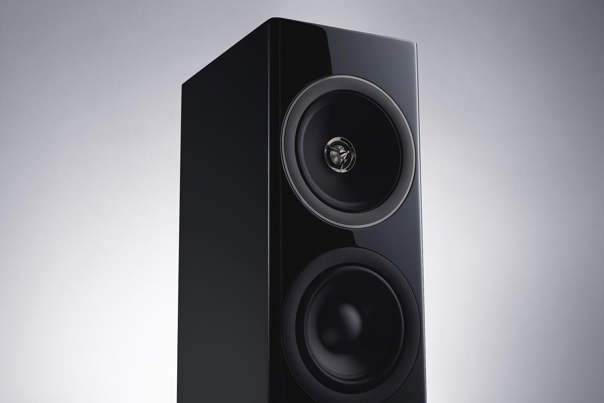 - Advanced BDMA (Balanced Driver Mounting Architecture): Die im Inneren des Gehäuses eingebaute “zweite” Schallwand, auf welcher der schwere Magnet des Treibers exakt an seinem Schwerpunkt montiert ist, wurde bis zur Bodenplatte des Gehäuses verlängert. Somit kann sie auftretende Vibrationen effektiv in den Fußboden ableiten.