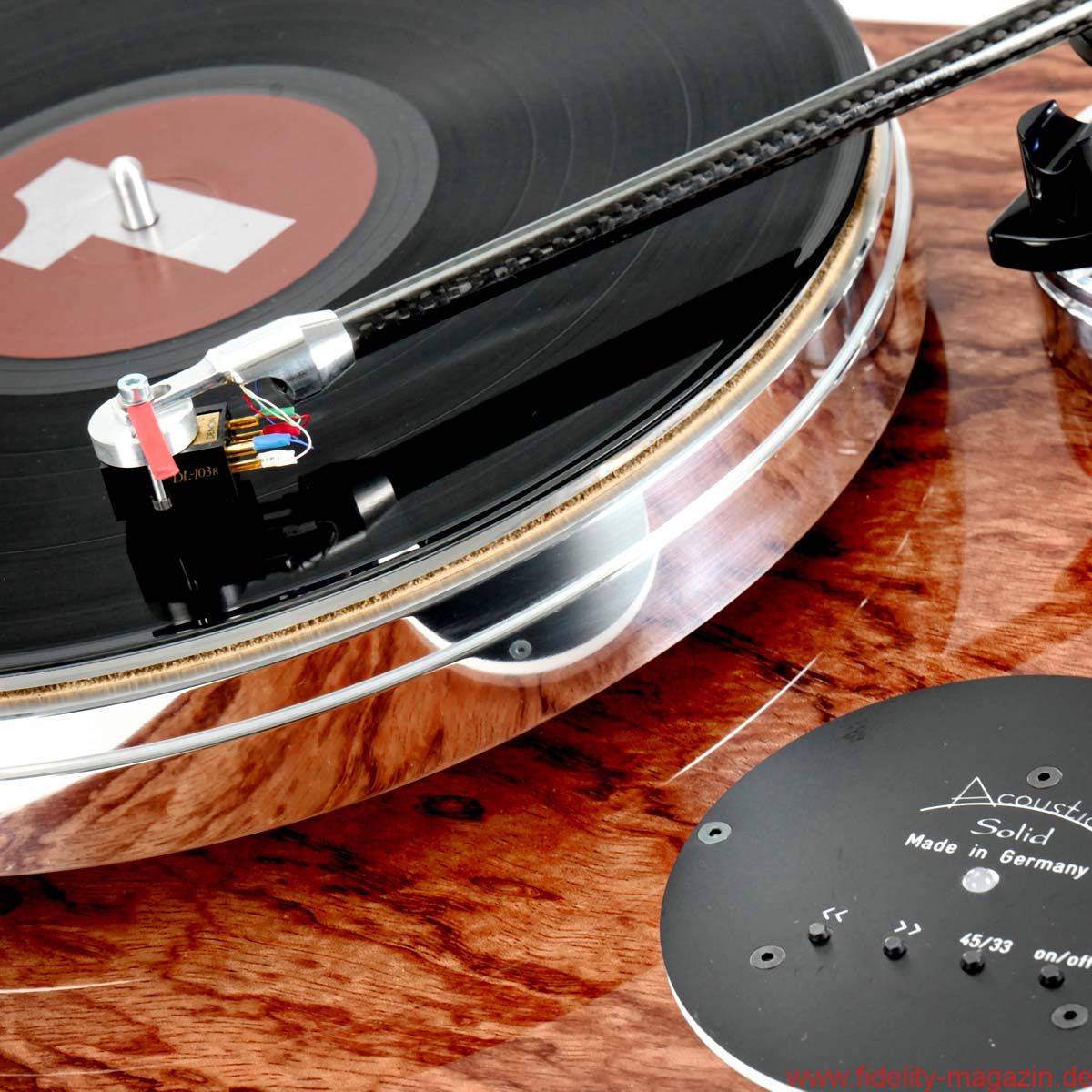 Führen wir das System abwechslungshalber in eine ganz andere Richtung – an die Antipoden, wo Bässe vorzugsweise als „phat“ beschrieben werden und integraler, wenn nicht einziger musikalischer Inhalt sind. Auch auf „Poppin’ Them Thangs“ der Straffälligen-Rapper der G Unit rund um eine Gestalt namens 50 Cent ist ein Piano zu hören, bei dem es allerdings weniger auf rasante Läufe ankommt, sondern vor allem auf die kleine Terz in den unteren Lagen, die neben der Bass Drum im Wesentlichen die Bassbegleitung des unflätigen Geschimpfes der Gedichteaufsager darstellt. Für das stilechte Nachempfinden dieser Produktion bedarf es wahrscheinlich eher eines Sportwagens mit Subwoofer-Befeuerung, aber auch unter Anlegen von Bewertungsmaßstäben der Klangschönheit lässt sich doch feststellen: Die Konfiguration von Plattenspieler und System lotet Grenzen aus, zeichnet Bässe klar und konturiert, aber niemals hochnäsig oder mit einer stiff upper lip. Zwischen Spaß und Klarheit, zwischen Nuanciertheit und Spielfreude, zwischen erdenschwerem Wumms und feinziselierter Klarsichtigkeit muss man sich nicht entscheiden – der Acoustic Solid überzeugt ausnahmslos in allen Disziplinen.
