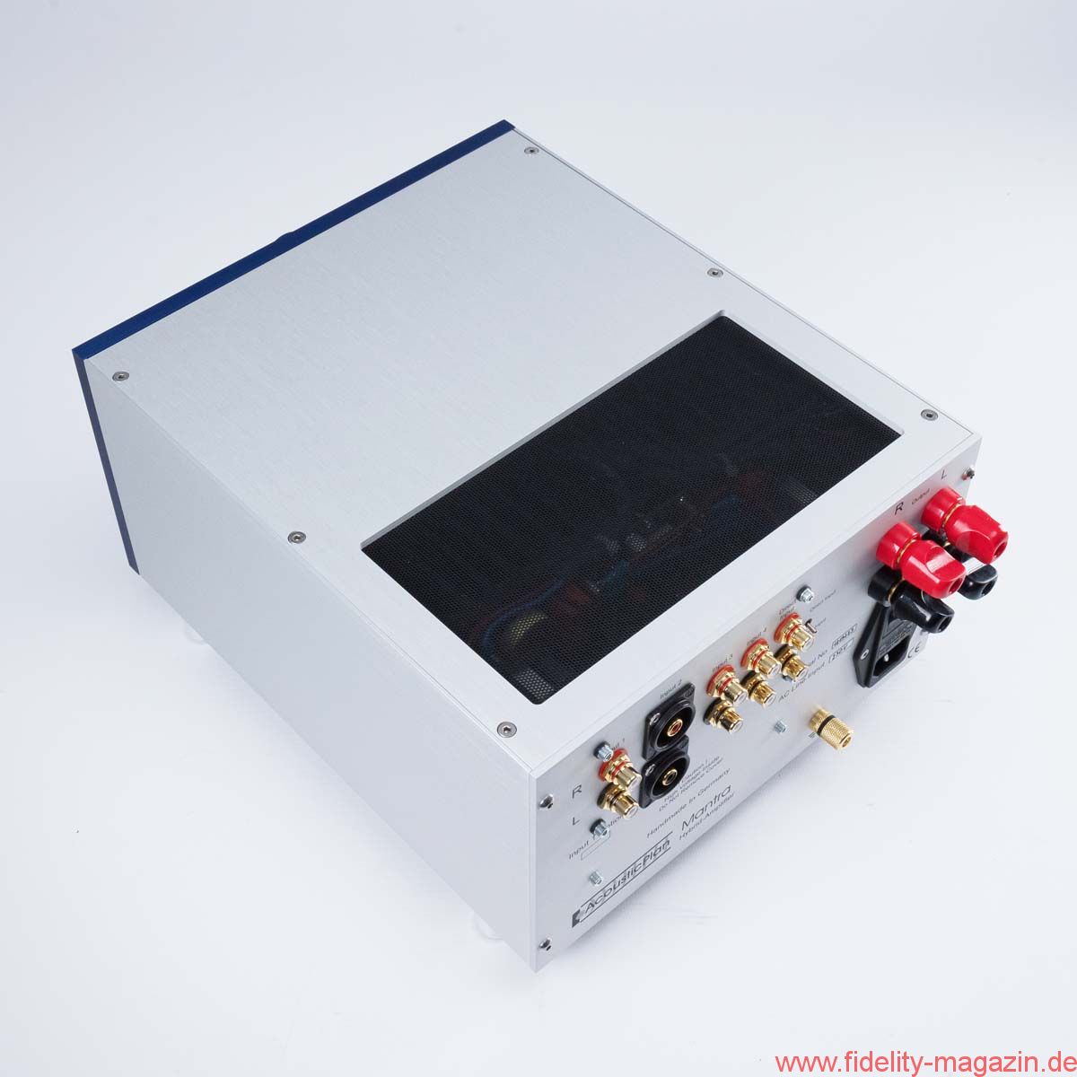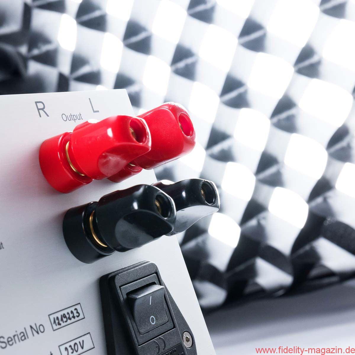 Drei Jahre, sagt Jäckle, habe er die Arbeit von H. S. Black studiert und sich durch dessen Patente gewühlt. Auch von dem Briten Malcolm Hawksford ist die Rede, mittlerweile emeritierter Professor der Essex University im britischen Colchester und Vater einer komplexen (und im Gegensatz zur allgegenwärtigen Gegenkopplung deutlich seltener verwendeten) Methode der Verstärkerlinearisierung. Das Resultat der Mühe: ein Röhren-Transistor-Hybrid mit bis über 70 Kilohertz reichender Bandbreite, reichlich Dämpfungsfaktor und wuchtigen zweimal 160 Watt an vier Ohm.