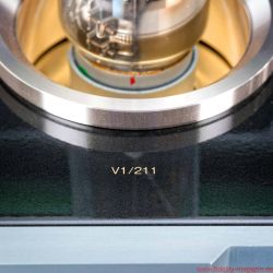 Die 211 wird hier datenblattgerecht mit einer Anodenspannung von circa 1000 Volt betrieben. Bei Senderöhren größerer Leistung und indirekt geheizter Katode darf die Anodenspannung erst nach erfolgter Durchheizung angelegt werden; eine zu frühe Belastung der Katode würde deren Schicht zerstören. Die direkte Heizung der 211er-Röhren in der ATM-3211 ermöglicht es hingegen, sämtliche Spannungen gleichzeitig anzulegen. Die Ansteuerung der 211 im Air-Tight-Monoblock übernimmt eine 12BH7 – eine Röhre, deren Leistung allein schon ausreichen würde, einen Lautsprecher mit hohem Wirkungsgrad recht passabel anzutreiben. In der Air Tight ATM-3211 jedoch sorgen zwei „charmante“ 211er-Sendetrioden mit feinen Tamura-Übertragern für ordentlich Leistung und Durchzugskraft. Die 211 glimmen im Betrieb übrigens ziemlich kräftig, sodass man im abgedunkelten Hörraum durchaus ohne weitere Beleuchtung auskommen – und geradezu romantisch in Musik schwelgen – kann. Erich Engel.