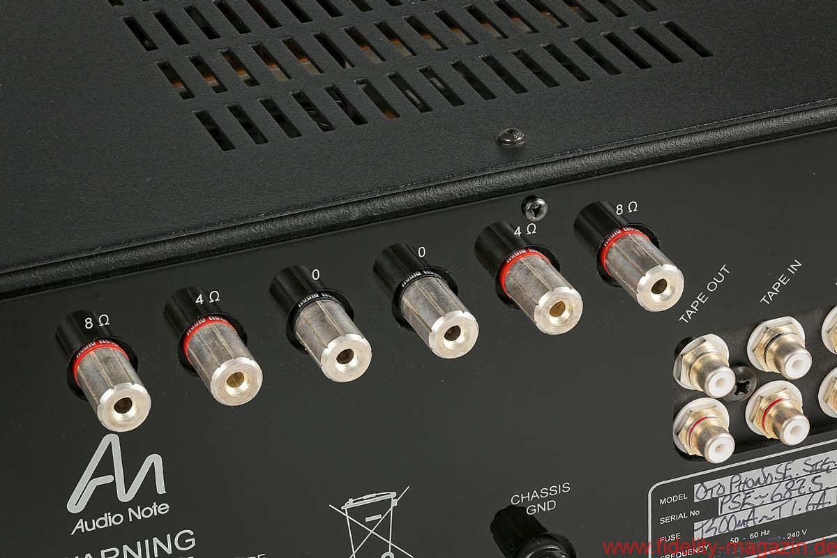 Die Endstufe des Oto SE ist – das Kürzel verrät es – ein Single-ended-Design. Eintakt-Schaltungen versprechen prinzipbedingt einerseits eine besonders geschmeidige klangliche Performance, andererseits eine eher bescheidene Leistungsausbeute. Der Oto SE leistet im konkreten Fall rund zehn Watt pro Kanal. Diese zehn Watt sind nicht nur kostbar, sondern klingen auch absolut köstlich – sofern sie auf geeignete Spielpartner, sprich effiziente Lautsprecher treffen. Da Audio Note vehement (und völlig zu Recht) den Kettengedanken vertritt und als Vollsortimenter eine ganze Reihe eigener vorzüglicher Lautsprecher im Programm hat, empfiehlt sich eine markentreue Kombination ohnehin von selbst. Doch auch mit anderen Fabrikaten sind angenehme Überraschungen an der Tagesordnung. Selbst eigentlich „unmögliche“ Kombinationen, etwa mit modernen (ineffizienten) Hightech-Schallwandlern, sorgen für pures Vergnügen, solange keine Clublautstärken verlangt werden. Am besten verstehe man solche „mismatches“ als freundlichen Wink mit dem Glaskolben: Der zarte Erstkontakt verheißt eine wunderbare, opulente Welt der Musik, sofern man zukünftig die richtigen Mitspieler, vor allem Laut-Sprecher, die ihren Namen auch verdienen, für das highfidele Ensemble verpflichtet.
