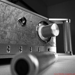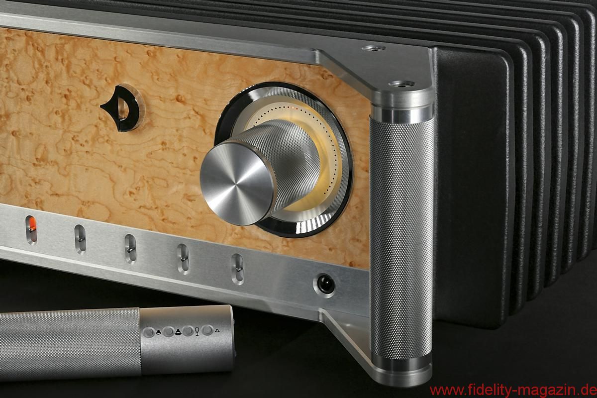 Es hätte so leicht sein können, diesen Verstärker mit einem launigen Artikel abzukanzeln, was einer weiten Leserschaft sicherlich Freude bereitet hätte. Das hätte geklappt, wenn ich den Verstärker nicht auch noch hätte spielen lassen … Aber zu viel soll noch nicht verraten werden.Rein äußerlich ist der XA Integrated also ein Statement. Die riesigen Griffe an der Front erweisen sich jedoch schon beim ersten Anheben als echter Segen. Denn dank ihrer lässt sich der Verstärker trotz seiner 43 Kilogramm vergleichsweise leicht bewegen und an seinem Einsatzort platzieren. Das Kühlgebirge ist ebenso anwenderfreundlich, denn es zeichnet sich durch das Fehlen jeglicher scharfer Kanten und Ecken aus – ein Feature, das man sich bei vielen teuren Verstärkern vergeblich wünscht. Die Holzfront ist tadellos verarbeitet und, abhängig vom persönlichen Geschmack, entweder ein echter Hingucker oder ein Anlass, sich unter den zahlreichen anderen Optionen für die Front umzuschauen. Der große Drehknopf fällt für meinen Geschmack allerdings etwas rau aus und dürfte auch etwas seidiger drehen. Massiv fühlt er sich schon an, allerdings bleibt dieses luxuriöse „Löffel-im-Honigglas“-Gefühl aus. Technisch ist das natürlich völlig irrelevant, allerdings bewegen wir uns in einer Preisklasse, in der das schlichte Abhaken der erforderlichen technischen Parameter nur die halbe Miete ist.