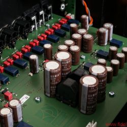 Im Innern hat man sich bei Avantgarde Acoustic in besonderem Maße der Filterung des eingehenden Netzstromes gewidmet. Allein optisch ist das schon eine Ansage: Uns ist noch in keinem Gerät ein derart massiv und sicher eingepackter Trafo untergekommen. Dagegen sehen selbst die mit Neopren ummantelten Umspanner von Accuphase noch schlank aus. Aber abseits der freilich im Gehäuse verborgenen „Anmach“-Optik soll das Ganze ja auch etwas bringen. Um möglichst saubere Arbeitsbedingungen für die nachfolgenden Verstärkerschaltungen zu garantieren, filtert Avantgarde Acoustic die anliegende Spannung schon vor der Umspannung gleich zweimal. Nach dem Trafo wird ein weiteres Mal gefiltert, um etwaige HF-Einstreuungen, die letztlich von der Verstärkerschaltung mitbearbeitet werden, spätestens hier zu entfernen. Danach werden die Gleichspannungen der einzelnen Abnehmer aktiv geregelt, um auch wirklich immer das gleiche Versorgungsniveau anbieten zu können.