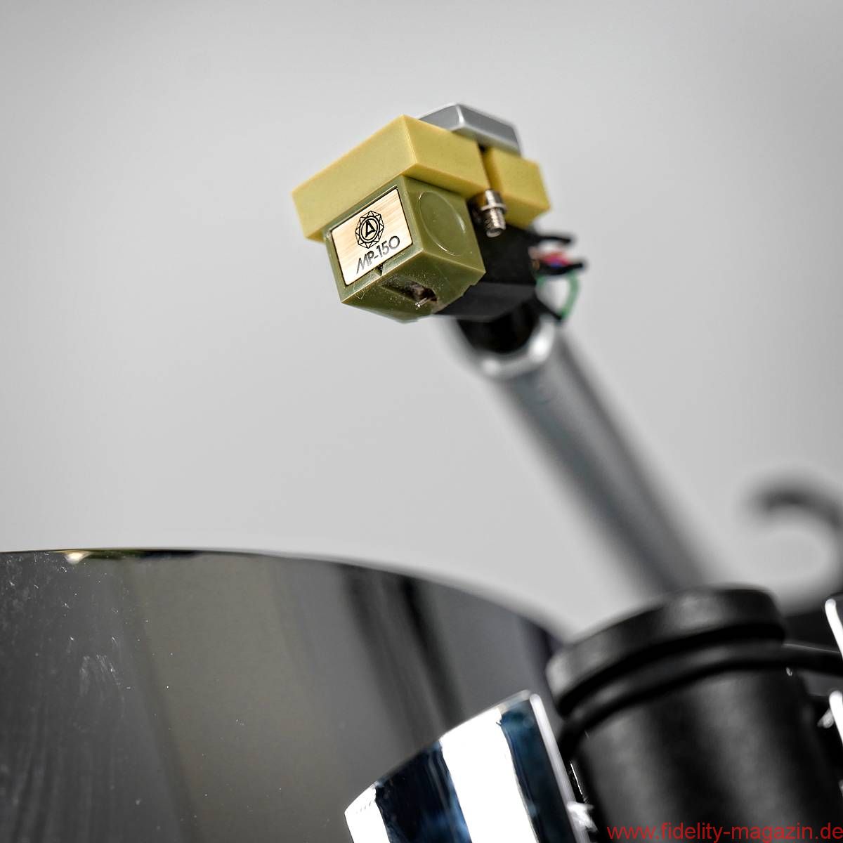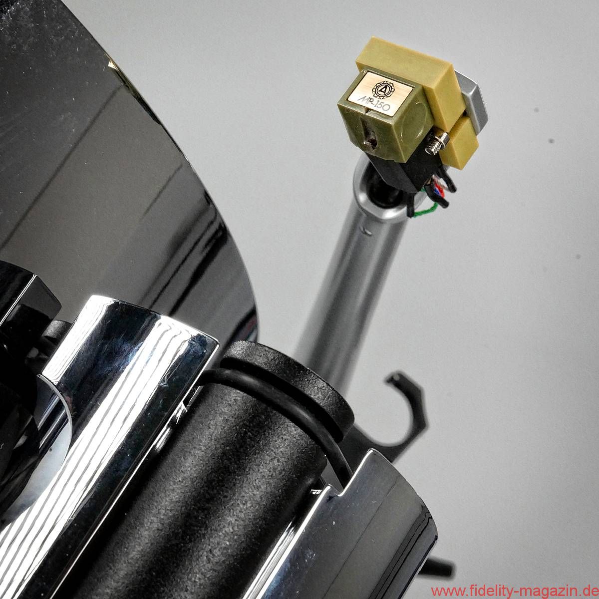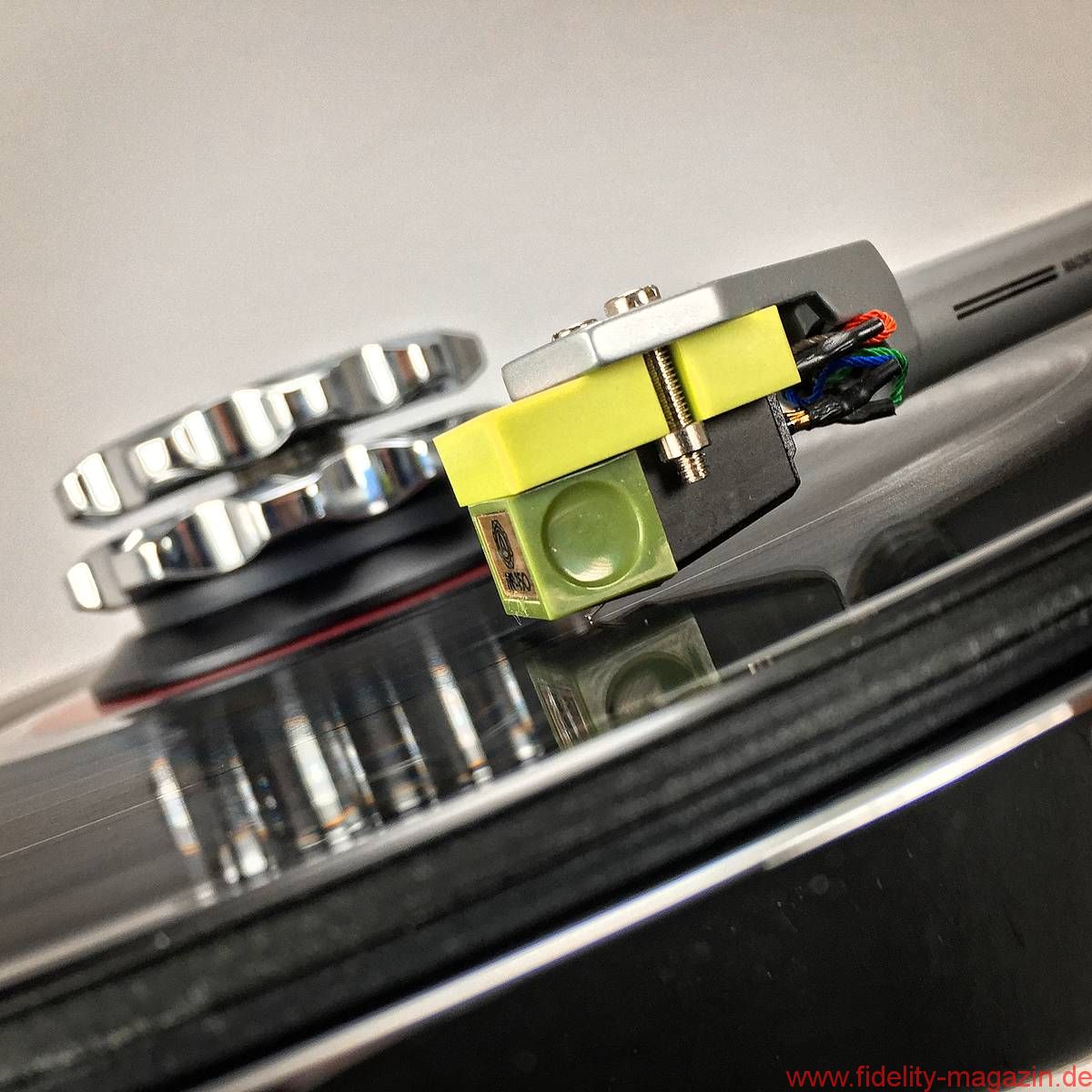 Tonarmauslegers kompensiert werden muss, bis sich der erwünschte kolbenförmige Hub zeigt. Zumindest theoretisch – in der Praxis hatte ich den erheblichen Vorteil, dass ich es ganz offenkundig mit einem Vorführlaufwerk zu tun hatte, das bereits perfekt justiert war. Im späteren Verlauf habe ich für das AT-System ein wenig von oben im Turm neben dem Tonarm nachjustiert. Dass das DaVinci von Clearaudio ein halbes Gramm mehr wiegt als das Nagaoka, habe ich großzügig ignoriert – es funktionierte trotzdem fantastisch.