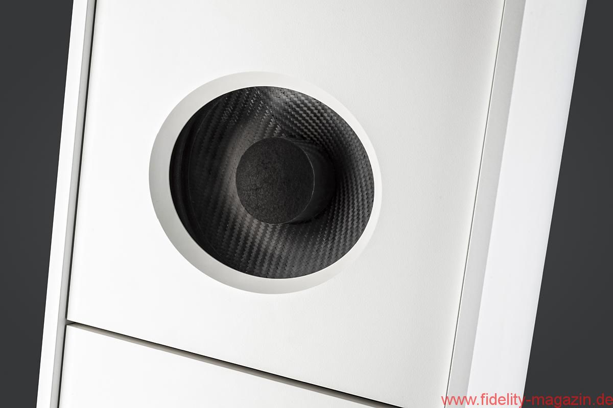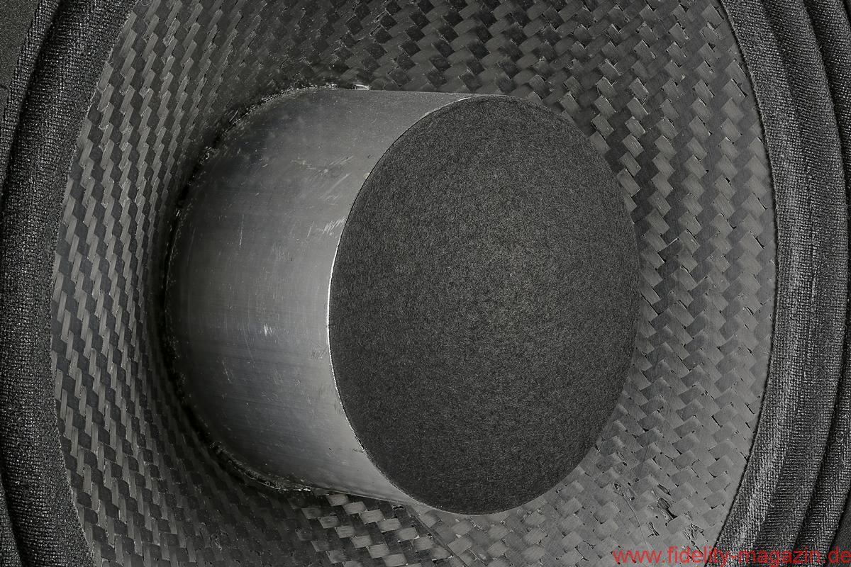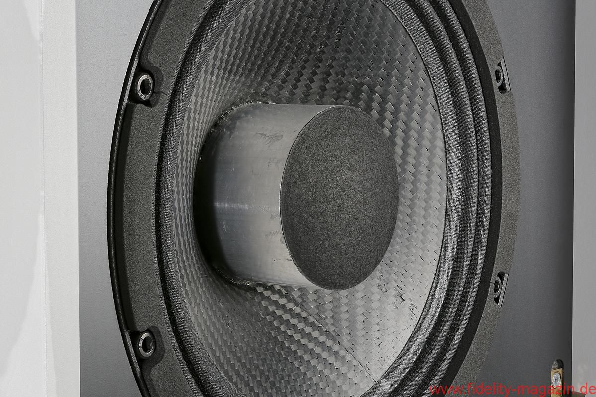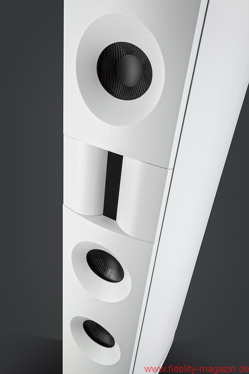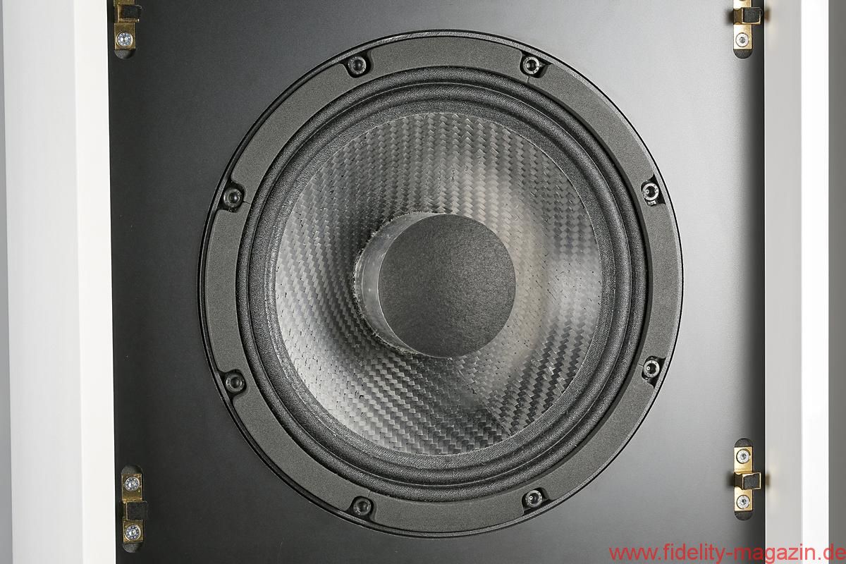 Chassis-Bestückung: 4 x DMC-geregelte 20-cm-Tieftöner auf der Rückseite, 4 x 16,5-cm-Mitteltöner mit Carbonmembran, 1 x Mittelhochton-Zylinderwellenstrahler auf der Vorderseite