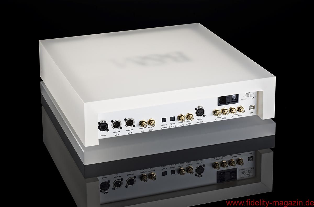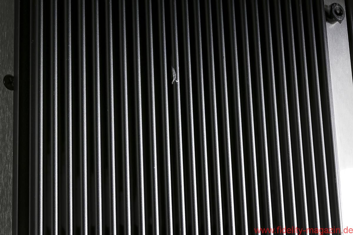 Ein weiteres B&M-Markenzeichen ist die exklusive Digitalfilter-Technik namens FIRTEC. Grundgedanke dahinter ist, dass das Gehör ein Schallereignis weder einzig nach Betrag noch nach Phase auswertet; relevant speziell für die räumliche Wahrnehmung ist ausschließlich der zeitliche Verlauf der Luftdruck-Änderungen an beiden Trommelfellen. Herkömmliche Entzerrungen kompensieren entweder den Amplitudenfrequenzgang (Betrag) oder den Phasengang, was prinzipiell eher zu einer Verschlechterung des Impulsverhaltens führt. FIRTEC hingegen erfasst die Eigenschaften der kompletten Lautsprecherkonstruktion als Ganzes und führt notwendige Entzerrungen über linearphasige FIR-Digitalfilter durch. Einfach ausgedrückt, handelt FIRTEC wohlwissend im vorauseilenden Gehorsam, bevor der Lautsprecher akustisches Fehlverhalten an den Tag legt. Auch für die Frequenzbereichsaufteilung in der Aktivweiche kommen linearphasige FIR-Filter zum Einsatz; Phasenauslöschungen in den Überlappungsbereichen der Chassis können daher bei der BMLine 25 prinzipbedingt nicht auftreten. Bei all ihrem Hightech-Appeal finde ich umso bemerkenswerter, dass Backes & Müller bei der BMLine 25 audiophile Konsequenz walten ließ. Beispielsweise werden beide Lautsprecher bei digitaler Ansteuerung über zwei separate AES3-Digitalkabel versorgt – das übliche serielle Durchschleifen des Digitalsignales von Box A zu Box B (Daisy-Chaining) hätte zur Jitter-Unterdrückung in der zweiten Box ein zusätzliches Reclocking erfordert und damit eine Zeitverzögerung verursacht.