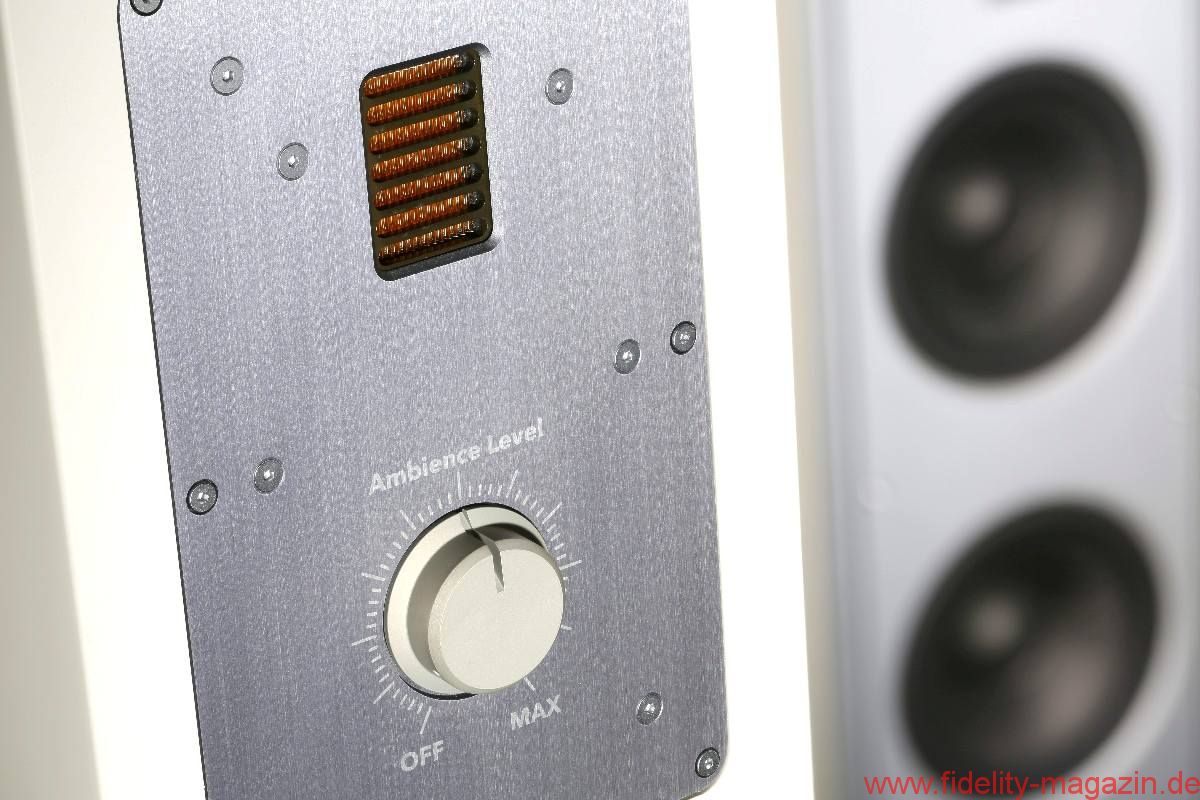 Bemerkenswert auch ihre fantastische Leuchtkraft – E-Piano-Läufe wie bei „Keeping Up with our Jones’s“ von Gareth Williams perlten, dass es eine Freude war. Packend auch das kompakte, völlig dröhnfreie Klangvolumen, das die Berlinerin im Tief- und Grundtonbereich entwickeln konnte – etwa beim druckvollen E-Bass von Hellmut Hattler in „Fine Days“ oder bei der wirklich körperhaften Gitarre von Christina Sandsengen in „Asturias“ (Suite española). Dennoch ist sie keine Schönfärberin, die alles in einen romantischen Schleier hüllt – beispielsweise klang das Klavier auf Anroozha Vol. 2 von Farid Farjad authentisch stählern, während Farjads Geige wunderbar volltönend das musikalische Geschehen bestimmte. Auch arbeitete die Ambience BA 31 die unterschiedlichen Hallräume von Klavier und Violine besonders deutlich heraus. Insbesondere zeigt die Berlinerin sehr gutes räumliches Differenzierungsvermögen: Der Effekt des rückwärtigen Hochtöners äußert sich dabei eher unterschwellig wahrnehmbar als vordergründig unvermittelt, also keineswegs so dominant, wie man befürchten könnte. Und genau so muss es sein, ließ sich doch mit dem dazugehörigen Pegelsteller Streichinstrumenten tatsächlich mehr Atem einhauchen, ohne das Klangbild dabei künstlich aufzuhellen. Auf jeden Fall lohnt es sich, eine zweite Person mit dem Einstellen des geschmeidig laufenden Lautstärkereglers zu beauftragen: Am Hörplatz fällt es leichter, die richtige Position „herauszuhören“.