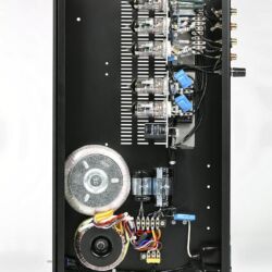 Unter der überschaubaren Croft’schen Produktpalette aus schwarzen Kistchen finden sich auch drei Phonostufen. Deren mittlere heißt schlicht RIAA „R“, wobei das R für „regulated“ und damit für eine aufwendigere Stromversorgung steht. In der „R“ kommen im Signalweg ausschließlich Röhren zum Einsatz, obwohl Croft auch gerne Halbleiter einsetzt. Seine Hybrid-Schaltungen sind freilich durchweg originell in einer erfrischenden Art und Weise, die man so nur selten findet. Die Phonostufe ist allerdings „nur“ MM-tauglich und benötigt für MC-Abtaster einen vorgeschalteten MC-Amp oder, besser, einen Übertrager. Zum Hören verwendete ich ein EMT JSD 6 im A23-EMT-Arm, dazu einen Übertrager von Auditorium 23, der an sich für das Denon DL-103 gedacht ist, aber ebenso gut mit dem prächtigen EMT harmoniert. Bei 46 Dezibel Verstärkung durch den Croft hängt man am Schluss verstärkungstechnisch zwar ein wenig zwischen den Welten, weil die Geschichte eine Spur zu laut ist. Aber, kein Beinbruch, das ist der Dynamik sogar förderlich und durch die beeindruckende Rauscharmut des mit vier Stück ECC83, einer ECC82 plus einer Regelröhre vom Typ 85A2 bestückten „R“ überhaupt kein Problem.