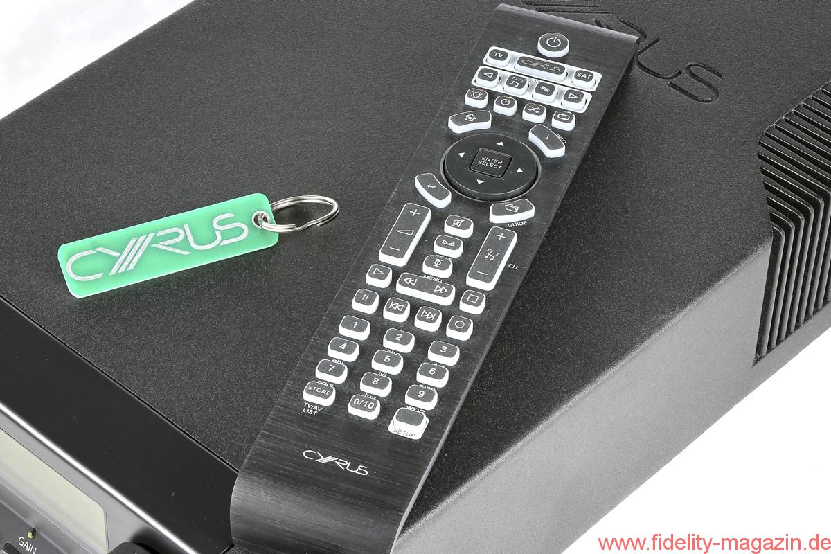 Dank der mitgelieferten Systemfernbedienung, die auch die Verstärker und Quellgeräte von Cyrus steuert, können Veränderungen der Einstellungen auch vom Hörplatz aus vorgenommen werden. Allerdings ist die Bedienung via Fernbedienung etwas umständlich. Hat man aber einmal den Bogen raus und weiß, mit welcher Zahl des numerischen Tastenfelds man welchen Wert verändern kann, findet man ganz gemütlich vom Sitzplatz aus die beste Einstellung heraus. Ein etwas altertümlich wirkendes, dafür aber unaufdringlich grün leuchtendes Display informiert über jede Veränderung. Es bietet sogar noch ein praktisches Detail: Ähnlich wie beim klassischen Kassettenrecorder zeigen zwei Pegelbalken kanalgetrennt an, wie groß das anliegende Signal ist. Damit lässt sich leicht verifizieren, ob man den richtigen Verstärkungsfaktor gewählt hat.