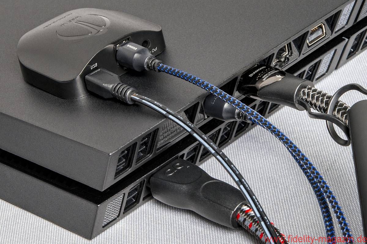 Audioquest , wobei laut AudioQuest-Vizepräsident Steve Silberman, der die Redaktion besuchte, um uns vor dem offiziellen Verkauf exklusiv einen Beetle zugänglich zu machen, die Einbettung dieses Chips über den guten Klang entscheidet. Über die Peripherie haben sich die Amerikaner tiefgreifende Gedanken gemacht und auf engstem Raum sowie innerhalb eines ausgeklügelten Schaltungslayouts eine Lösung verwirklicht, die den Beetle in gewisser Weise allen derzeit erhältlichen DACs überlegen macht. Er arbeitet mit einem neuartigen Microcontroller von Microchip Technology, der herkömmlichen FPGAs weit überlegen sein soll. In Verbindung mit dem Audio-Code von Gordon Rankin, einem Pionier der asynchronen USB-Schnittstelle, erlaubt dieser MX-Chip nicht nur den 24/96-Datentransfer über USB und Toslink, sondern auch asynchrones USB und asynchrones Bluetooth, ein Standard, den AudioQuest derzeit exklusiv beansprucht. Darüber hinaus offerieren die Amerikaner ständige kostenlose Software-Updates.