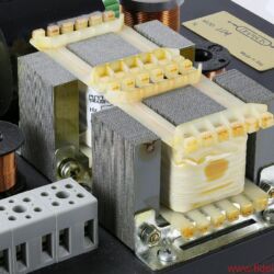 In der Tat können wir als notorische Nörgler in der gesamten Konstruktion nur eine einzige kleine Schwachstelle ausmachen: Auf der symmetrischen, überaus ansehnlichen Frequenzweiche, deren Van-den-Hul-Verkabelung unsichtbar in einer Extralage ausgeführt ist, entdecken wir zwischen all den feinen, großteils maßgefertigten Bauteilen ein Elko-Pärchen, dessen Langzeitstabilität allerhöchsten Ansprüchen wohl eher nicht genügen dürfte und daher diskutabel erscheint – insbesondere angesichts der ansonsten wirklich superben Qualität bis ins allerkleinste Detail.