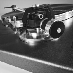 In Sachen Fertigungsqualität ist am CS 550 nichts zu rütteln. Gut, er kommt in Leichtbauweise daher und strahlt daher nicht unbedingt die Amtlichkeit großer Masselaufwerke aus. Ansonsten gibt’s für einen Straßenpreis von knapp 1200 Euro eine akkurat und dezent beschichtete massive Holzzarge, einen Aluminium-Sandwich-Plattenteller mit Dämpfungselementen aus Kupfer und Gummi sowie Tellerlager aus Messing – und einen seriös anmutenden Tonarm mit vierfach kugelgelagertem Kardangelenk. Der CS 550 ist ein klassischer Riementriebler mit Präzisionsflachriemen. Wer Singles abspielen will, muss nicht Hand anlegen, sondern nur Daumen und Zeigefinger: Der Gleichstrommotor mit elektronischer Drehzahlregelung kann per Drehschalter von 33 auf 45 Umdrehungen umgeschaltet werden. Hübsches Detail am Rande: Das Gegengewicht des Tonarms liegt nicht mit dem Tonarm auf einer Achse, sondern etwas tiefer – dies sorgt vor allem bei alten, nicht vollständig planen Schallplatten für etwas gutmütigere Ausgleichskräfte beim „Wandern“ der Nadel.