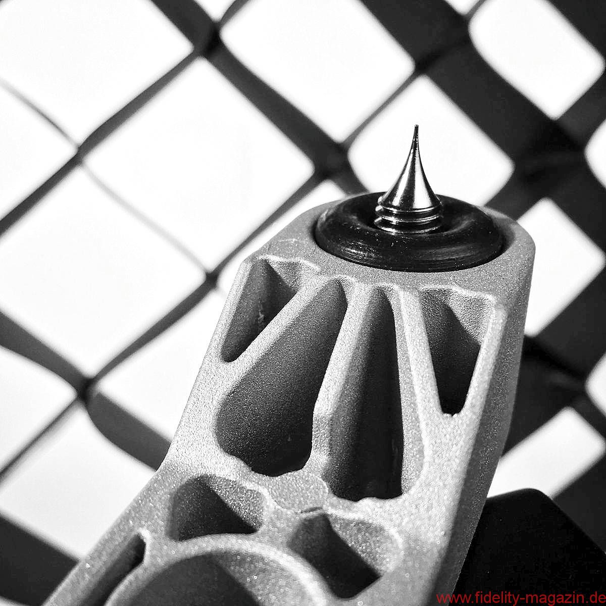 Die eigentliche Revolution findet im Kellergeschoss statt. Die Ingenieure wurden von den Tiefton-Lieferfähigkeiten des Sub 600 derart, sagen wir ruhig „geflasht“, dass ein ähnliches Fundament wohl an zweiter Stelle auf der Liste der Entwickler stand. Im tiefen Keller niederer Frequenzen werden weniger quirlig wuselnde Feinstinformationen übertragen, folglich sind eher hohe Leitfähigkeit bei extremer elektrischer Belastbarkeit gefordert. Einleuchtend, dass Dynaudio auch für die Bässe der Excite X44 auf eine Schwingspule aus Kupfer vertraut. Das erhöht ein wenig die zu bewegende Masse der Membran, was aber sicher nicht der alleinige Grund dafür sein kann, dass die Dänen die Verwendung stabiler Stromlieferanten dringend empfehlen. Gesunde einhundert Watt sollten es mindestens sein, damit die X44 aufwacht.