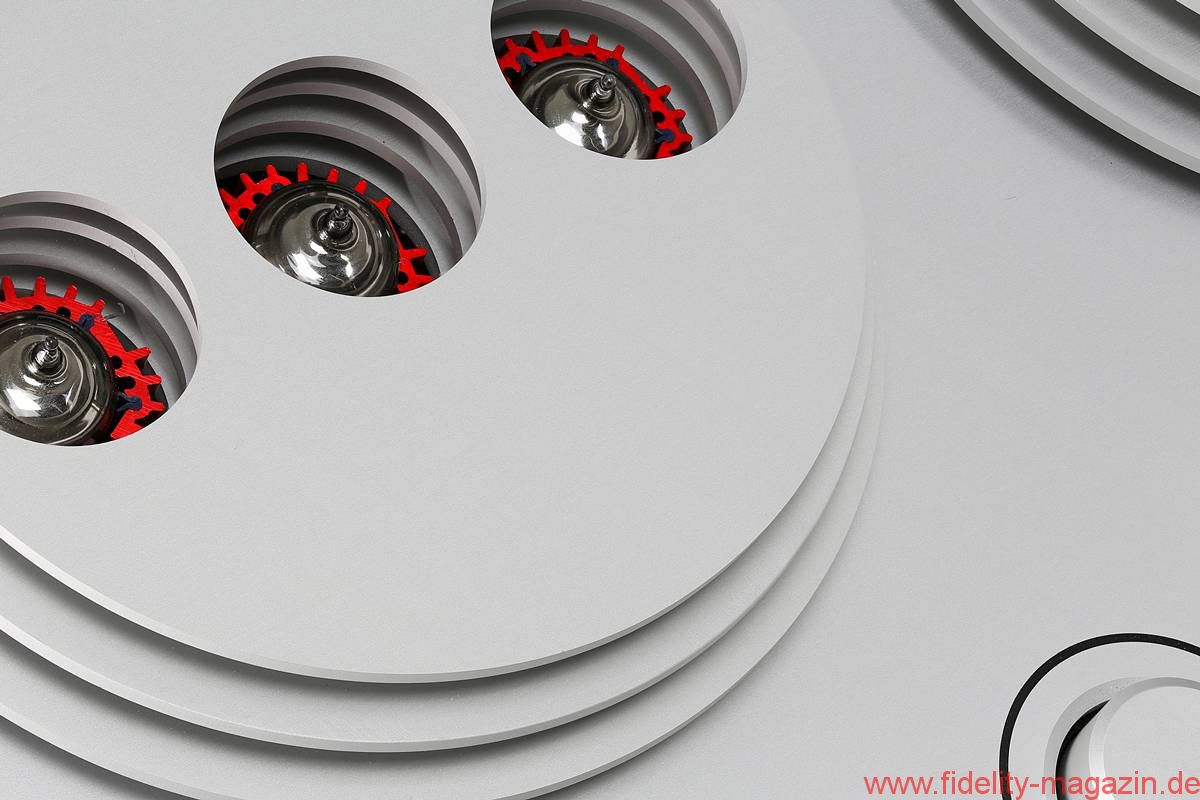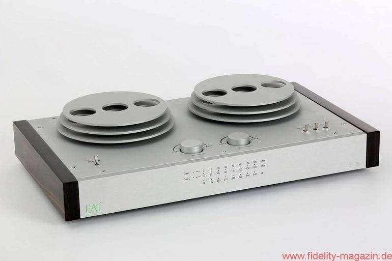 Wie es sich für einige – nicht alle, denn das Thema ist umstritten – „Röhren-Kreise“ in der Szene gehört, vertraut auch der E-Glo auf eine rein passive Phono-Entzerrung. Und damit natürlich auf keine Über-alles-Gegenkopplung; die schaltungstechnische Alternative ist ja eine so genannte „aktive Phonoentzerrung“ bei der die frequenzbestimmenden Filter in einer Gegenkopplungsschleife über zwei Verstärkerstufen sitzen. Aufgetrennt in Hoch- und Tiefton-Filter, wird die RIAA-Korrektur im E-Glo im Gegensatz dazu in Form eines passiven, so genannten R/C-Filters vorgenommen, bei dem die Frequenzstabilität auch davon abhängt, dass Quell- und Lastimpedanzen, zwischen denen das Filter angeordnet ist, möglichst konstant bleiben. Was mit Röhren so einfach nicht ist – aber das ist wieder ein anderes Thema. Dagegen eher in aller Munde sind fraglos die Koppel-Kondensatoren: EAT setzt da auf Bewährtes, will sagen, auf die berühmten Edel-Kapazitäten von Mundorf, genauer gesagt, auf die viel gelobten Teflon-Wickel des inzwischen weltweit renommierten Kondensatoren-Spezialisten. „All other capacitors are Wima“, heißt es dann, womit womöglich die Phonoentzerrung gemeint ist. Nichts dagegen, denn das ist nur ein Baustein im sauber abgestimmten Klang-Getriebe.