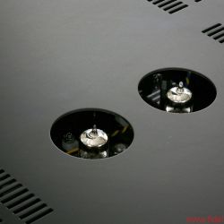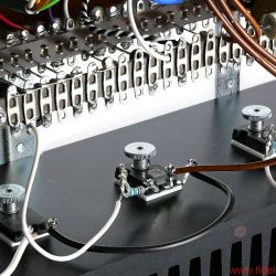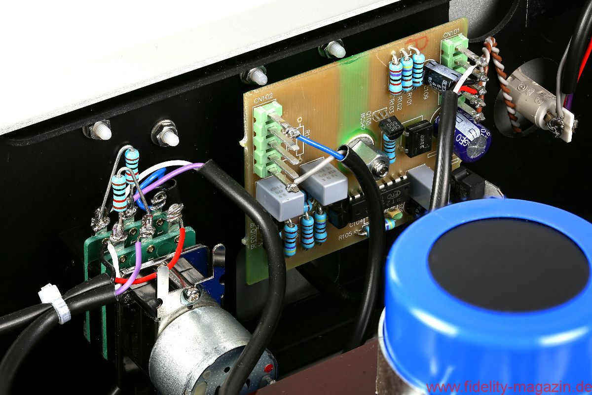 Seinem puristischen Image zum Trotz, besitzt der Straight eine Fernbedienung. Das Testexemplar als Vorserienmodell zwar noch nicht, aber das Standard-Motorpoti ist schon da. Eine bittere Pille für einen Entwickler, der Stereopotis generell zugunsten kanalgetrennter Regler ablehnt. Aber gerade deshalb, weil er suboptimale Ansätze nicht akzeptiert, kann man Reinhard Thöress diesbezüglich vertrauen. Er setzt nicht auf das blaue Alps, das in der Branche unhinterfragt als Nonplusultra gilt, sondern auf eine ebenfalls japanische Maßanfertigung der Profi-Ausrüster von TKD. Das lineare Leitplastikpotentiometer glänzt von Haus aus schon mit hervorragenden Gleichlaufwerten, die Reinhard Thöress nochmals verbessert zu haben glaubt, indem er ihm mithilfe zweier Widerstände einen Quasi-Logarhythmus aufzwingt. In der Praxis wirkt sich das in einem schnellen Anstieg des Pegels auf den ersten beiden Zentimetern aus, danach reagiert es nicht mehr so sensibel. Der schwarz glänzende Kunststoffregler mit grau geriffeltem Rand läuft definiert, aber nicht überkultiviert sahnig, wie die beiden anderen zur Rechten und Linken wird er von oben in oranges Licht getaucht, das an glühende Röhren erinnert. Jedoch nicht mit modernen, praktischen und effizienten LEDs, sondern mit kleinen Glimmlämpchen – Anspruch, Haltung und Design bilden hinter dem fünften fallenden Schleier eine perfekte Symbiose.