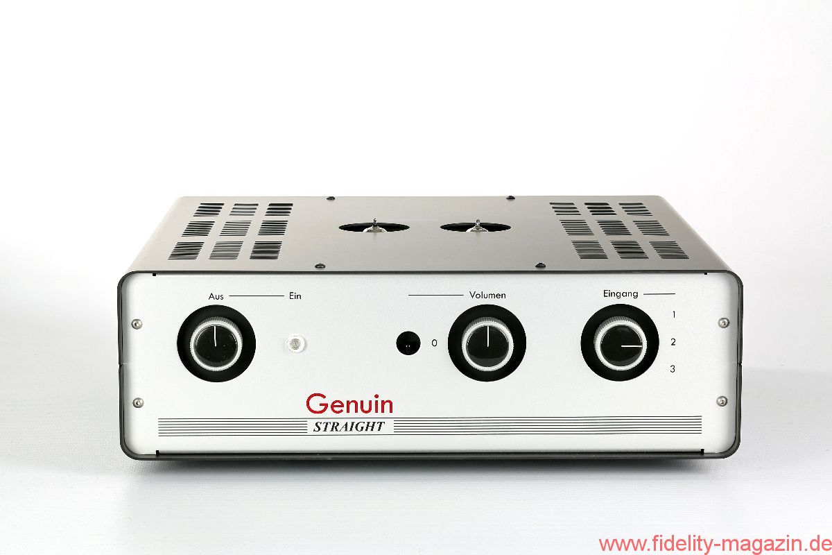 „Neutral wie Studioelektronik“, nennt das Thomas Wendt, Vertrieb und Gründer der Handelsmarke Genuin. Aber sollte das wirklich schon alles sein, gibt es keine Geheimnisse, nichts Unentdecktes? Ich will keinen neutralen Verstärker, sondern ich möchte bitte einen loyalen, der auf meiner Seite steht, einen, der mich bedient, befriedigt und aufklärt. Auf die Gefahr hin, das schon mehrmals erwähnt zu haben: Will man Studio-Sound, greift man zu professionellem Equipment, so wie man fürs exakte Längenmaß einen Zollstock nutzt und nicht die Elle. Um es gleich vorweg zu schicken, ich halte den Genuin Straight nicht für neutral, sondern für radikal. Sowohl hinsichtlich des puristischen und alles andere als alltäglichen Single-ended-Konzepts mit Röhrenvorstufe und lediglich einem Leistungstransistor pro Kanal, als auch seines extrem drahtigen, entschlackten und nüchternen Klangbilds. Romantik und das, was man bei Kleinleistungsverstärkern mit Röhren gemeinhin schummrig als Flair bezeichnet, entsprechen nicht seiner Mentalität, dennoch liefert er auch mit im übertragenen Sinne weithin sichtbar entblößtem Unterleib eine emotional sehr ansprechende, je nach Aufnahme auch anrührende, Vorstellung ab.