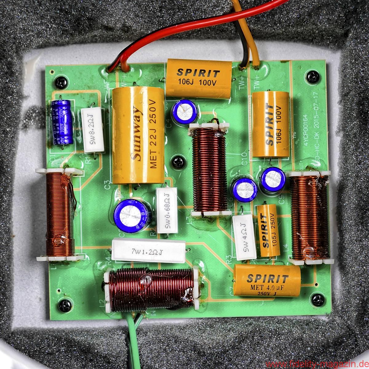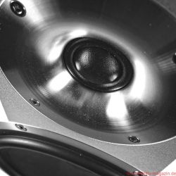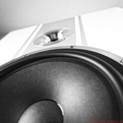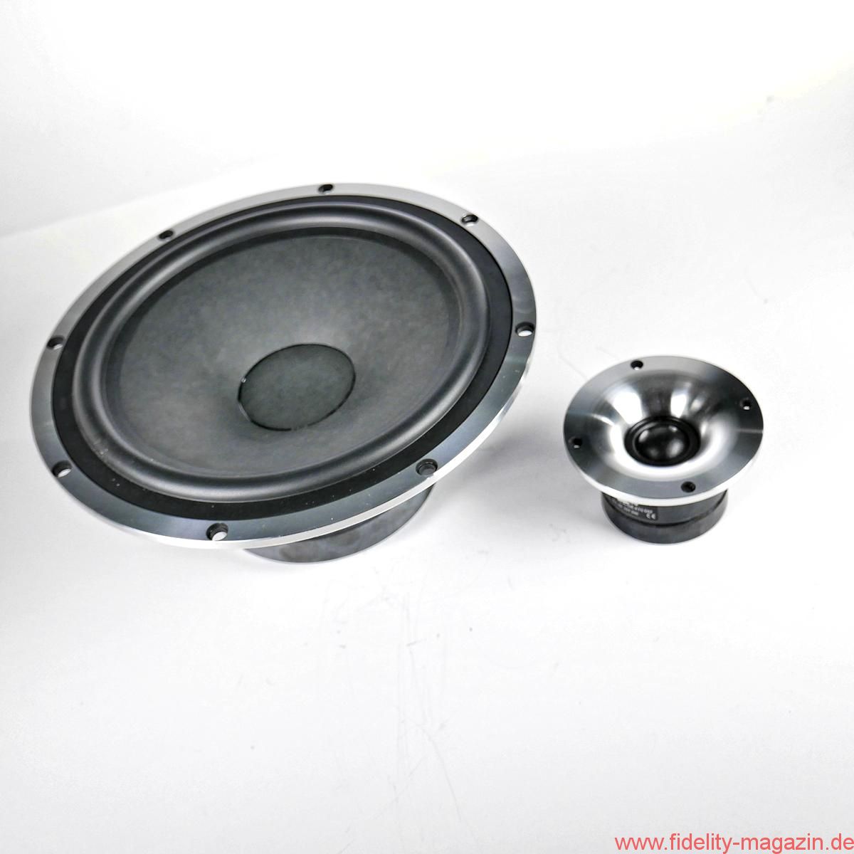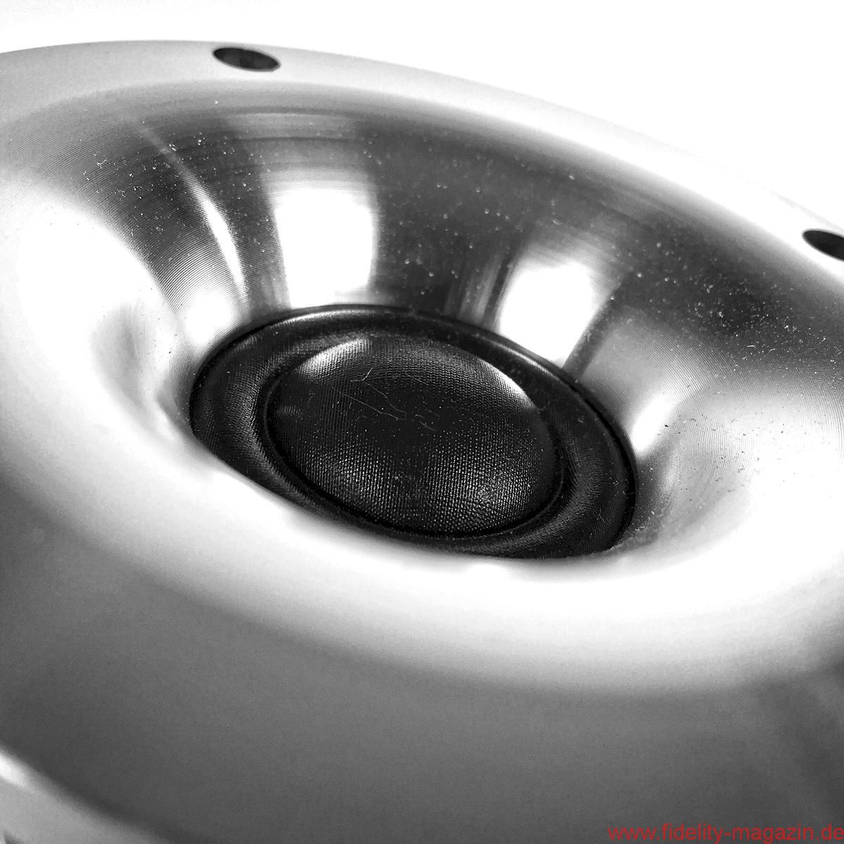 Schon während der Montage der ungewöhnlichen Schmuckstücke beginnt man es zu ahnen: Zwei Auspuff-, pardon, Bassreflexrohre an der Unterseite sind ein nicht zu übersehender Hinweis darauf, dass hier – Hubraum: 55 Liter – fortan großvolumig Luft bewegt werden soll. Beim Hantieren mit den Schrauben für die Fußkonstruktion, die das MDF-Chassis der Direkt auf drei Punkten leicht nach hinten neigt, ergibt sich der Blick auf einen mächtigen Magneten, der zu besonderer Vorsicht mahnt; zunächst beim Umgang mit Schrauben und Inbus, dann mit dem Pegelsteller.