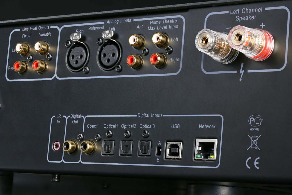 Ausgänge analog: 1 Paar Lautsprecherklemmen, 2 x Line (fix und variabel)