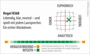 Schon komisch: Nachdem es jahrzehntelang en vogue war, eine Anlage im Sinne der Arbeitsteilung aus möglichst vielen Einzelkomponenten zusammenzustellen, sehen wir heute mehr und mehr wieder Multifunktionskomponenten, die man angesichts ihres Funktionsumfanges locker in mehrere Einzelgeräte zerschlagen könnte. Das hat nicht nur Vorzüge, häufig sind solche Lösungen kompromissbehaftet. Dass ein Gerät viele Dinge gleichzeitig kann, heißt nicht, dass es auch alle mit gleicher Sorgfalt erledigt. Mut zur Lücke hat man im Hause Hegel indes nicht, zu einem Preis von über 5000 Euro darf man Spitzenleistungen in allen Teilbereichen erwarten.
