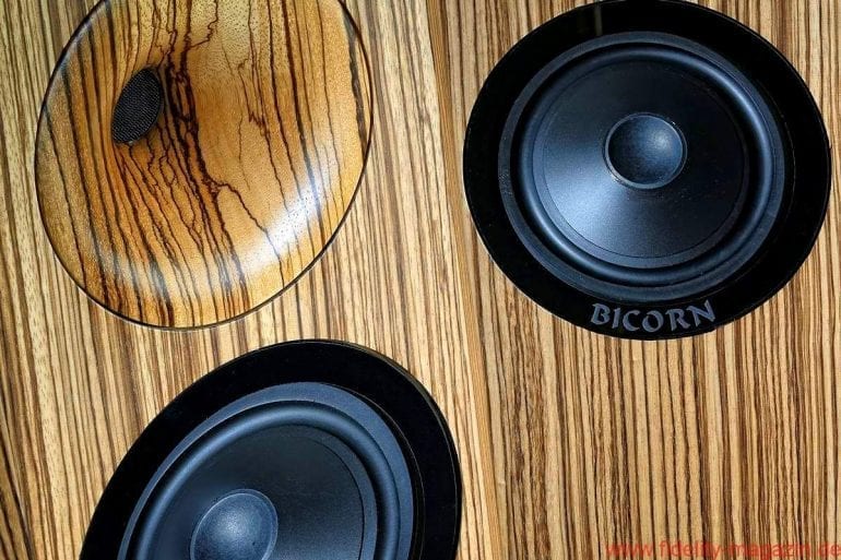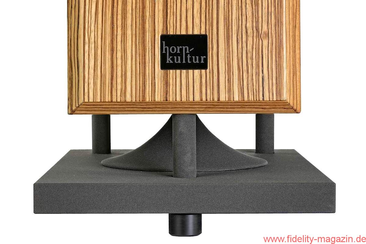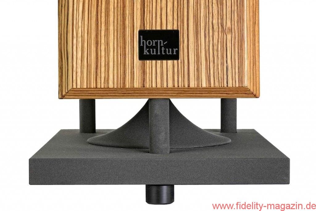 Der schon erwähnte Tiefmitteltöner bringt eine gerade einmal 125 Millimeter durchmessende Polymermembran ins Spiel. Demzufolge steigt die BiCorn auch nicht bis in den tiefsten Frequenzkeller hinab. Laut Horn-Kultur ist bei glaubwürdigen 55 Hertz Schluss. In meinem Raum lag der Minus-drei-Dezibel-Punkt nur ein paar Hertz darüber – und das bei sehr gründlicher Bedämpfung. Trotz des unter dem Hornmund platzierten Diffusors, der ja das Rundstrahlverhalten verbessern soll, verhält sich die BiCorn überaus unkompliziert, was die Aufstellung im Raum angeht. Ein wenig Unterstützung durch eine nicht allzu weit entfernte Rückwand tut dem Tiefton gut, wobei diese Nähe der Begrenzungsflächen das Klangbild auch nicht flach werden lässt. Gute 70 Zentimeter stellen sich nach mehreren Versuchen in meinem Raum als idealer Kompromiss heraus.