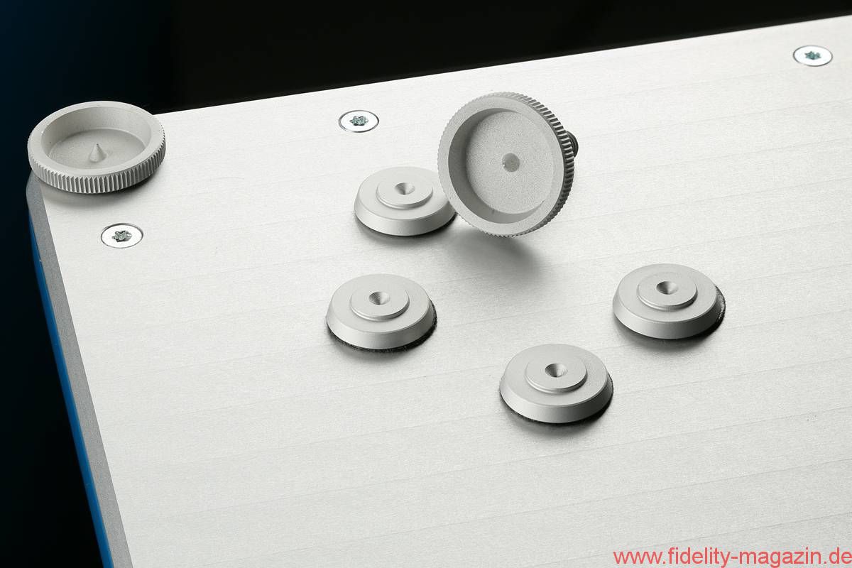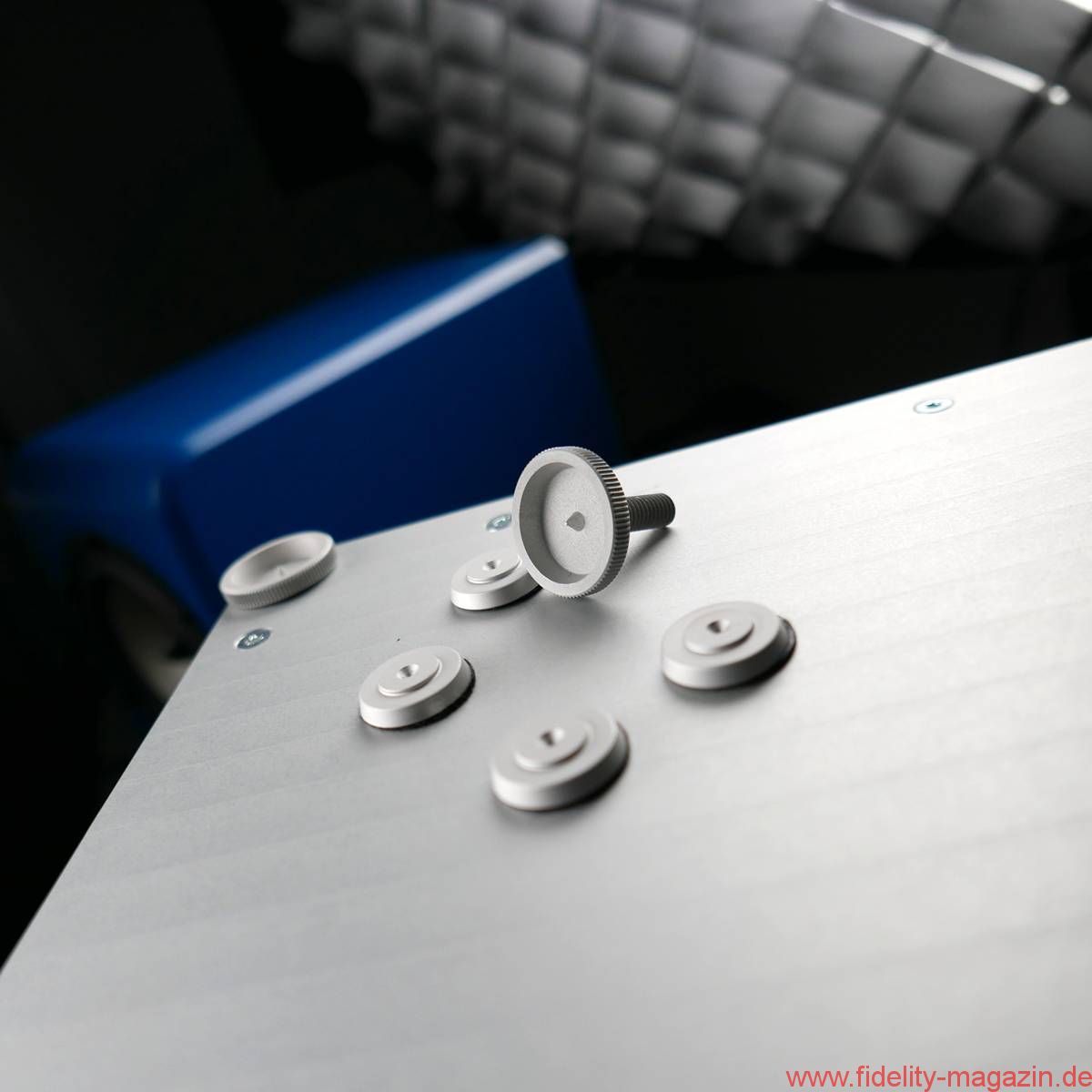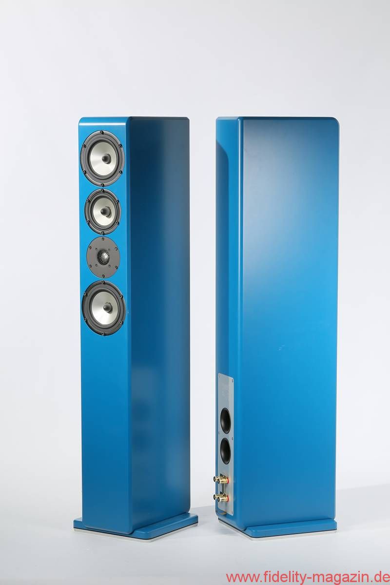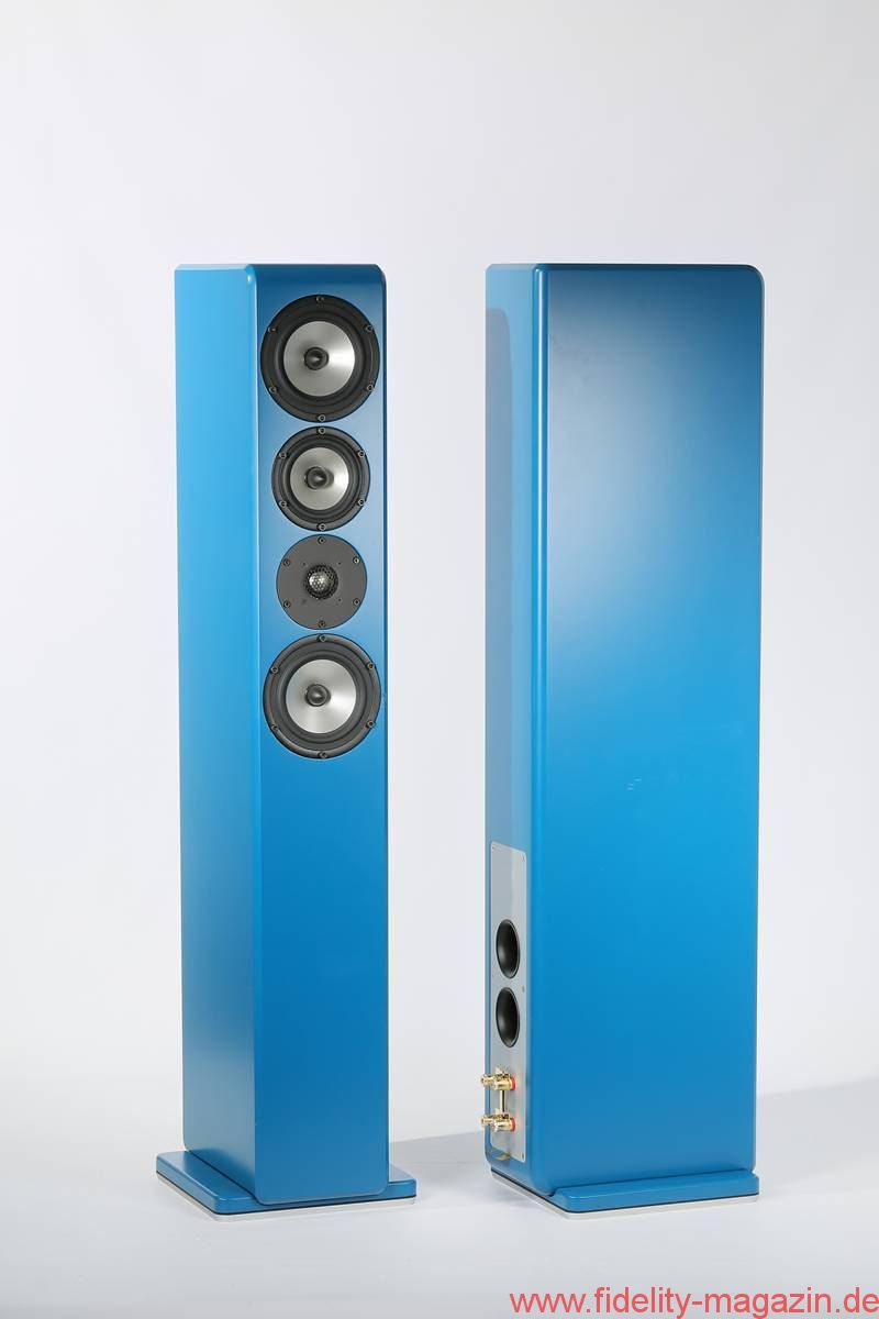 Die Testexemplare erreichten das Wohnzimmer des Chronisten in einem fröhlichen Petrol – das hatte zwar jemand anders ausgesucht, setzte aber eindrucksvolle Akzente und machte sich vor der roten Wandfarbe ausgezeichnet. Der tadellose Farbauftrag verspricht Großes: Qualität nämlich. Zu Gast in der Wohnstube war das Modell 13.4 der Advanced Line, ausgestattet mit aufgemotzter Frequenzweiche und Spikes in Rändeloptik. Die Bezeichnung „Advanced Line“ ist etwas irreführend, gehören doch alle zumindest bisher erhältlichen Schallwandler zu dieser „Linie“. Die eigentliche Kategorisierung erfolgt anhand von aufsteigenden Nummern: Los geht es mit der kleinen 10er-Reihe, es folgen die 13er, an die sich die Topmodelle der 17er-Kategorie anschließen.