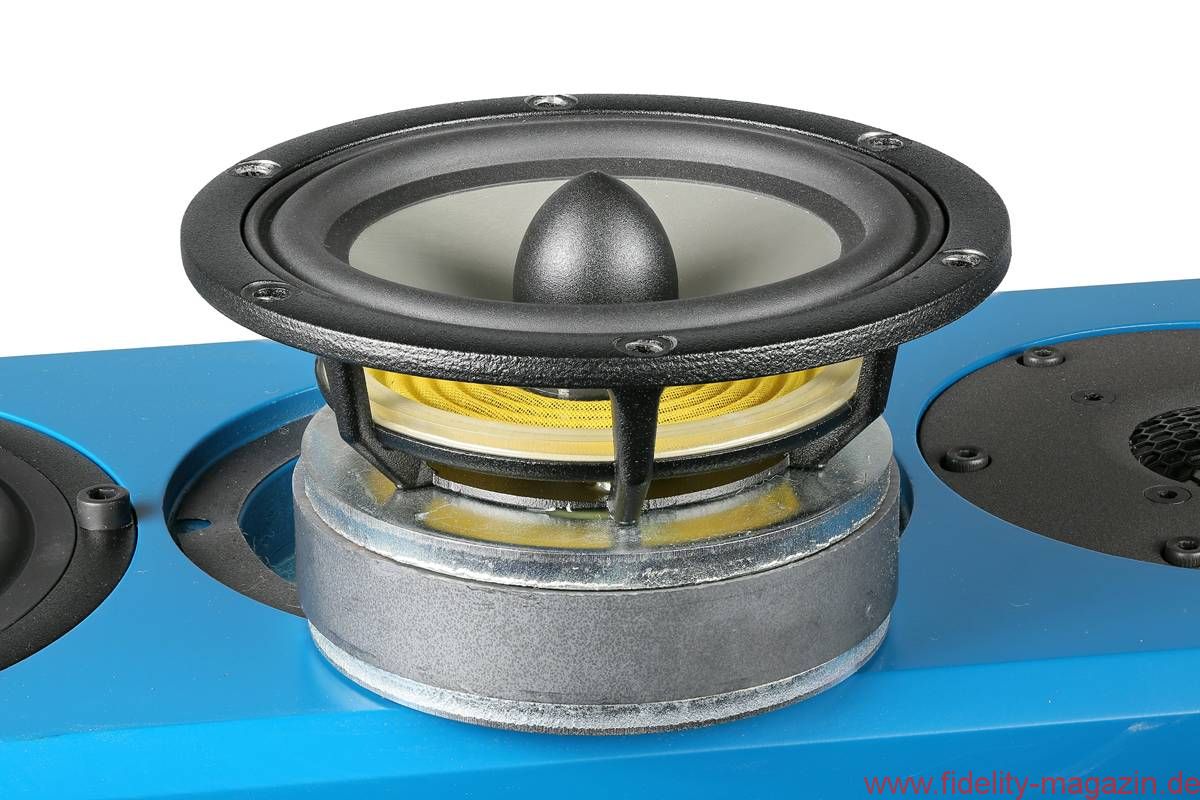 Bestückung: 2 x 15-cm-Langhub-Tieftöner, 12-cm-Mitteltöner (alle Aluminium), 2,9-cm-Hochtöner (Aluminium-Magnesium)