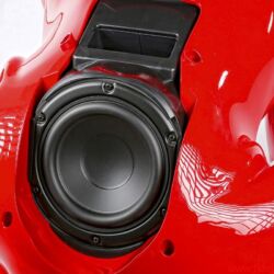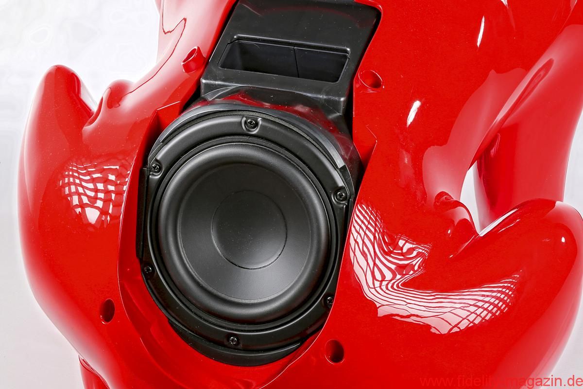 Bestückung: zwei Breitbandlautsprecher (hinter der „Sonnenbrille“), Subwoofer (im „Rücken“)