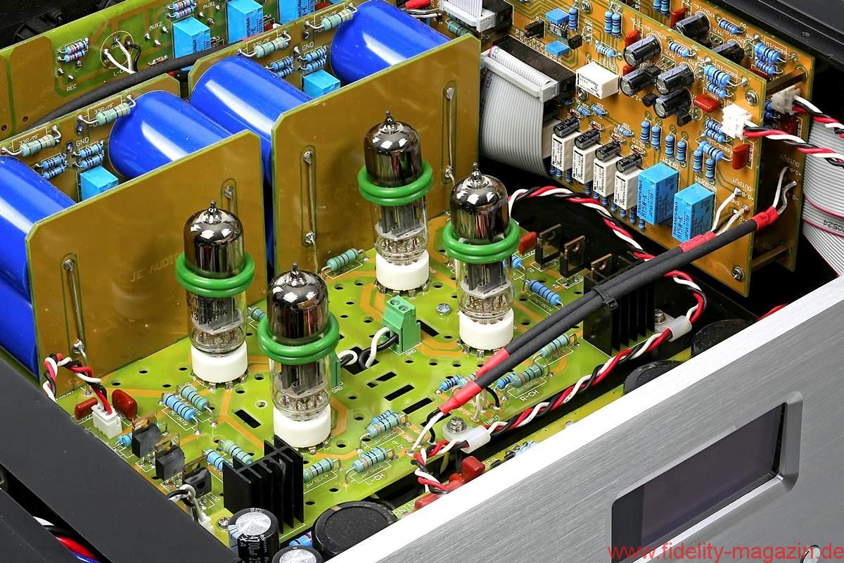 In der Tat weisen beide Protagonisten von JE Audio ungewöhnliche Schaltungstopologien auf. Definitiv kein Dogmatiker, vereint John Lam das Beste aus zwei Welten und setzt Röhren zur Spannungsverstärkung, Halbleiter dagegen zur Stromverstärkung ein. Schließlich hat Lam viele Jahre beim Chip-Spezialisten National Semiconductor gearbeitet, bevor er im Jahre 2007 JE Audio gründete.