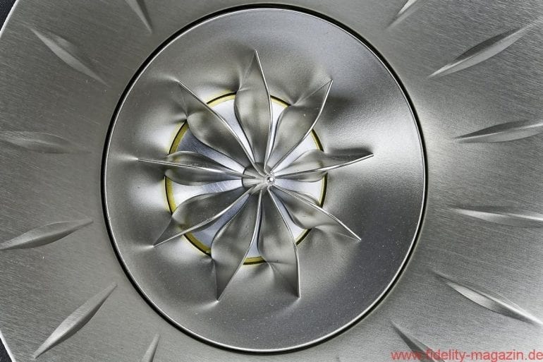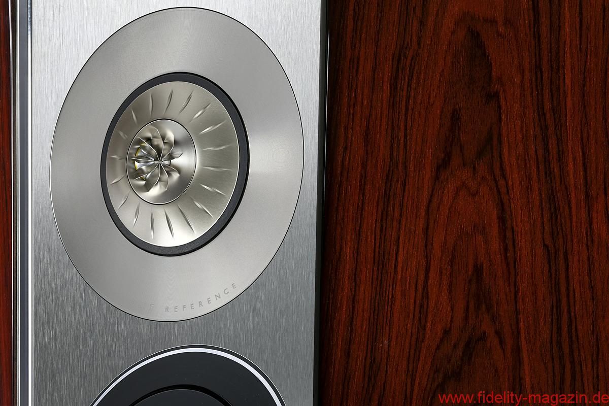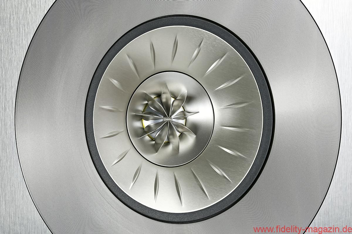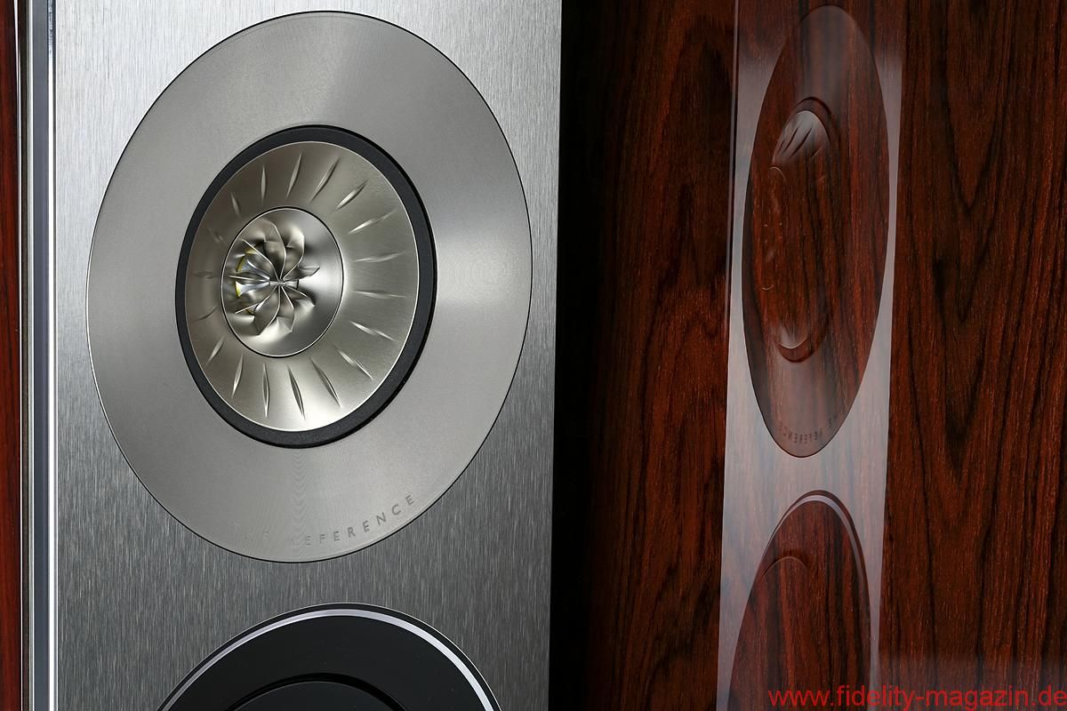 So wundert es nicht, dass bei KEF koaxiale Schallwandler schon seit mehr als 25 Jahren zum Einsatz gelangen – ihren Einstand gab die „Uni-Q“ genannte Technologie 1989 in der Reference 105/3. Seitdem haben die Briten Uni-Q beständig weiterentwickelt, zuletzt für die KEF-Topmodelle Blade und Blade Two: Diese jüngste Generation der Koaxialtreiber kombiniert einen 125-Millimeter-Alumembran-Mitteltöner mit einer 25-Millimeter-Aluminium-Kalotte. Besonders ausgefuchst finde ich dabei das „Tangerine Waveguide“ genannte Gitter über der Hochtonkalotte, das den durch ihre Krümmung bedingten Geschwindigkeitsabfall zum Rand hin kompensiert – aber Moment, ich soll ja nicht soviel über Technik schreiben … 😉
