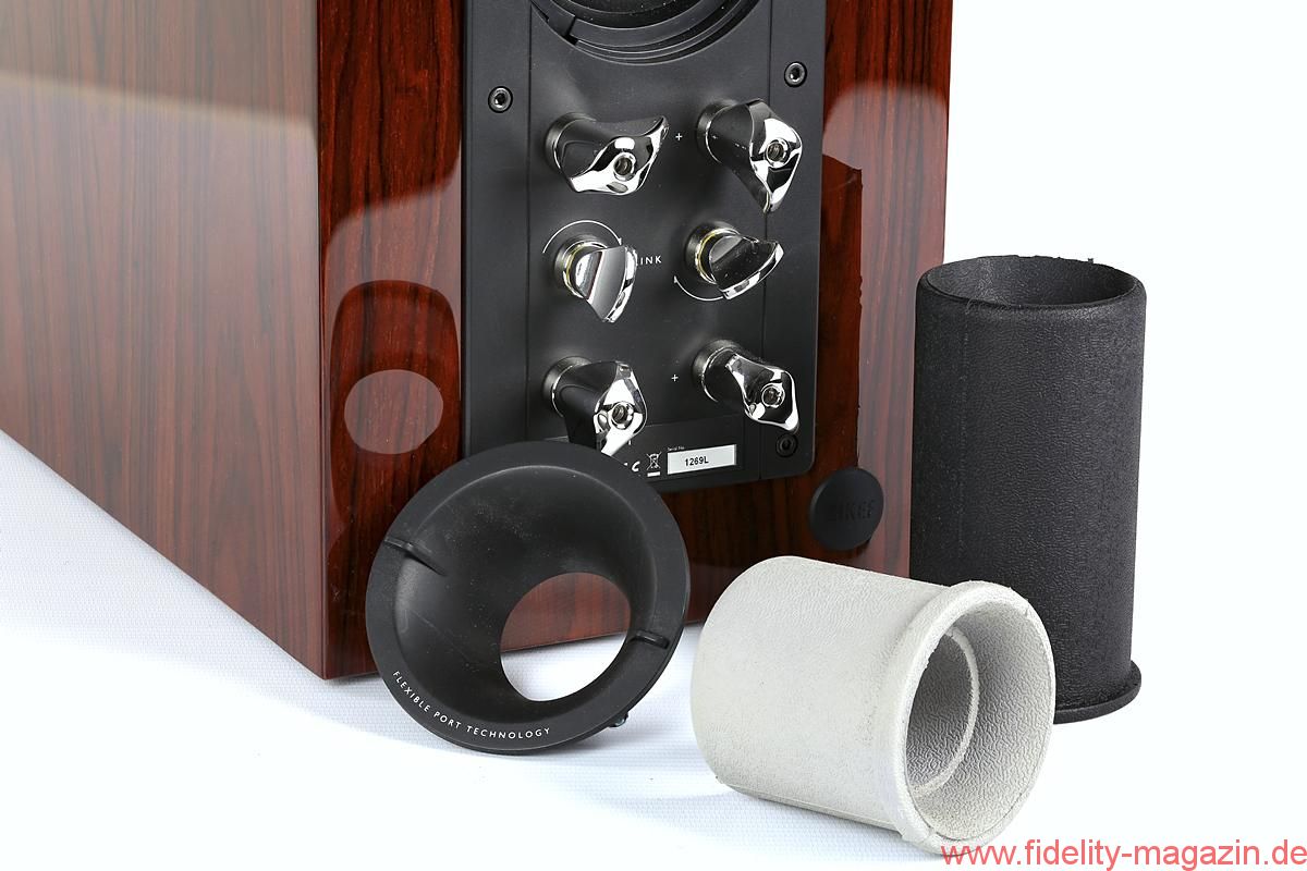 Als stabile Basis für Koaxialstrahler und Tieftöner dient der Reference 1 eine Sandwich-Schallwand aus hochqualitativen Aluminumplatten mit dämpfendem Layer aus Harzkomposit. Das Ganze ist elastisch mit dem Boxengehäuse verbunden, was die Übertragung von Körperschall wirkungsvoll unterbinden hilft. Ein echter Hingucker ist dabei die eingefräste, ebenfalls leicht konkave Schallführung (Waveguide) für den Koaxialstrahler, die sein Bündelungmaß im Übergangsbereich an den Tieftöner anpasst. Generell besticht die Reference 1 durch eine wirklich piekfeine Verarbeitung (made in England), die sich auch in einem sportlichen Preis niederschlägt, sowie etliche ausgeklügelte Detaillösungen. So kommt beispielsweise das robuste Bi-Wiring-Terminal ohne lästige Drahtbrücken aus: Die Verbindungen lassen sich durch einfaches Auf- oder Zuschrauben separater Klemmkontakte trennen oder schließen. Ausgesprochen praktisch auch die variable Bassreflexöffnung, die sich mit kurzem oder langem Weichgummi-Einsatz akustisch an unterschiedliche Aufstellungsbedingungen anpassen lässt. Meine Ausführungen beziehen sich in erster Linie auf die “kurze” Variante des Bassreflexrohrs, das für einen etwas steileren Abfall zu sehr tiefen Frequenzen hin sorgt, dafür im Grundton etwas fülliger/satter aufspielt, was mir bei einer freien Aufstellung im Raum besser “schmeckt”. Sie ahnen richtig: Welche Rohrbestückung man bevorzugt, ist tatsächlich zu einem guten Teil Geschmackssache – und leicht herauszufinden: Der Wechsel von einem zum anderen Rohr ist mit wenigen Handgriffen erledigt.Nun zum Klang: Die KEF-Lautsprecher vorheriger Generationen mit Uni-Q-Koaxialtreibern habe ich allesamt in guter klanglicher Erinnerung. Allerdings zeigten sie sich für mich im oberen Mitten- und Präsenzbereich bei allen Qualitäten stets etwas zurückhaltend abgestimmt. Mit dieser, wohlwollend ausgedrückt, betont “unaufdringlichen” Spielweise hat die Reference 1 nun nichts mehr am Hut. Sie kommt deutlich ausgewogener, direkter und frischer daher und musiziert ungemein griffig, konturiert, sauber durchzeichnend, aber auch „tonfüllend“ und homogen. Zudem ist sie auch noch tonal ausgewogen. Dabei verteilt sich Ihr Klangbild nicht wie bei den meisten Mehrwege-Lautsprechern auf mehrere, vertikal übereinander getürmte Ebenen, was ein räumlich besonders ausgeprägtes Klangbild vorgaukelt. Vielmehr spielt “die kleine große” KEF absolut geschmeidig und bruchlos über den gesamten Frequenzbereich aus ihrer akustischen Mitte heraus. Angenehm auffällig hierbei, dass sie sich in Sachen Bündelung nicht wie Horn-Koax-Lautsprecher auf den Hörplatz-Sweetspot beschränkt, sondern homogen ein relativ großes Hörfeld ausleuchtet.