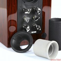 Besonderheiten: “Uni-Q driver array”, “Tangerine Waveguide”, Bi-Wiring-Terminal mit integrierter, zu- oder wegschaltbarer Brückung; integrierte Gewindebuchsen für fixe Montage auf optionalen Stativen (1200 €/Paar)