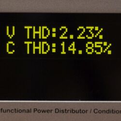 Der Drehschalter linker Hand führt einen durch das umfangreiche Menü des Gordian, wo man über den Gesamtverzerrungsfaktor des Stromnetzes oder über den Leistungsfaktor des Verbrauchersystems informiert wird. Aber nicht nur das: Hier kann man tatsächlich Einfluss nehmen und über einzelne Parameter wie das EMI-Filter den Leistungsfaktor beeinflussen. Für Experten tut sich da ein weites Feld auf, der Laie muss genau hinhören, denn nicht jede Veränderung bedeutet auch eine Verbesserung. Oder er überlässt die Konfiguration dem Gordian: In Stellung Auto passt sich das Filter selbst optimal an die Gegebenheiten an. Nach meiner Erfahrung, letztlich die beste Option und das, was den Gordian so attraktiv erscheinen lässt: Statt die Netzspannung passiv neu zu generieren, regeneriert sie die Schaltung des Gordian aktiv. Seine Filtertopologie arbeitet adaptiv, kann sich also sowohl auf Verbraucher (mit Schaltnetzteilen, Dimmern oder ähnlichem) als auch auf den Verunreinigungsgrad des Hausnetzes einstellen. Da dort so viele Unwägbarkeiten lauern wie Übergangswiderstände im Keller, bin ich sehr froh, dass Gordian selbst Rückschlüsse aus seiner Analyse ziehen kann.