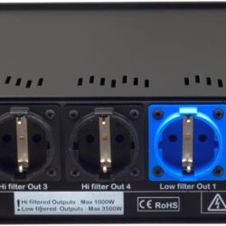 Steckplätze: 6 Schukodosen (4 bis 1000 W/4 A, stark gefiltert; 2 bis 3500 W/15 A schwach gefiltert)