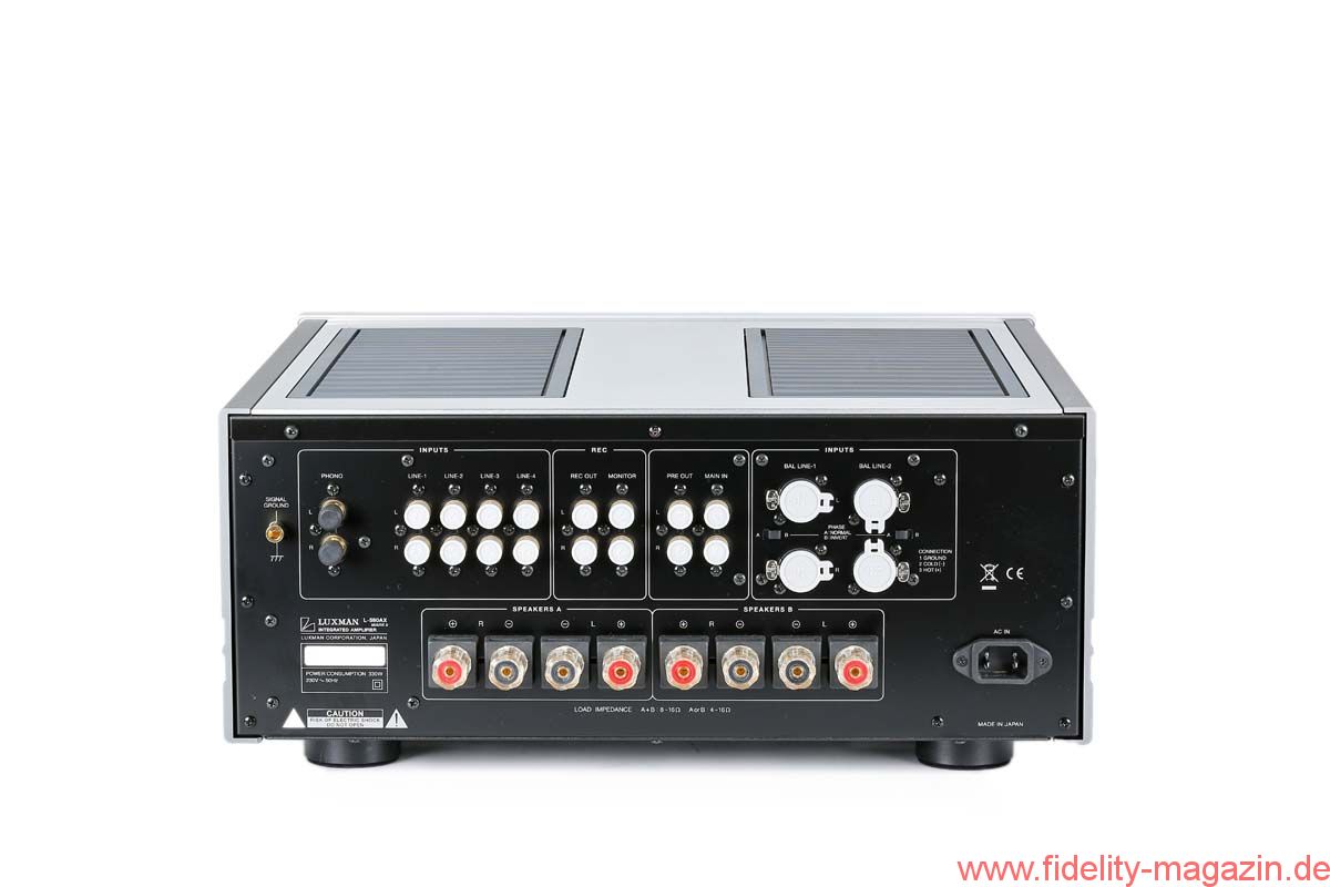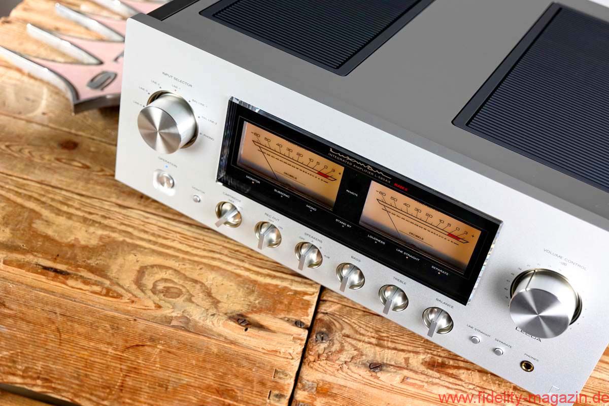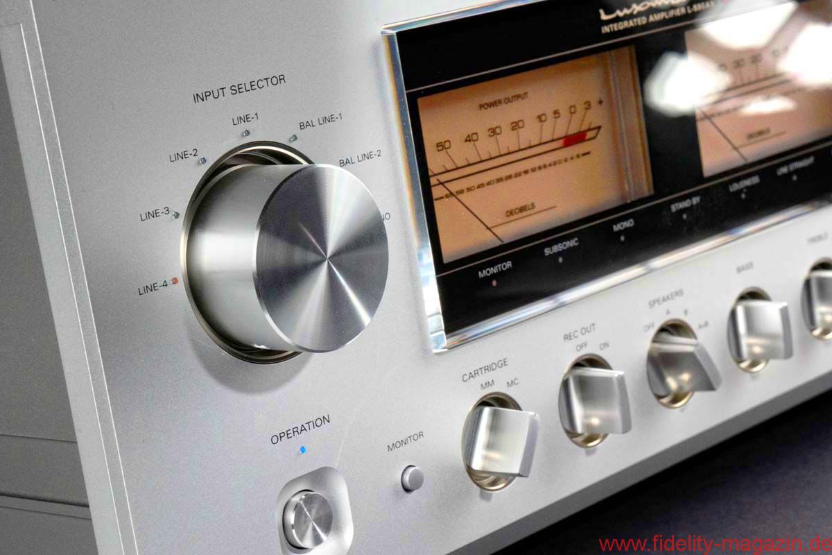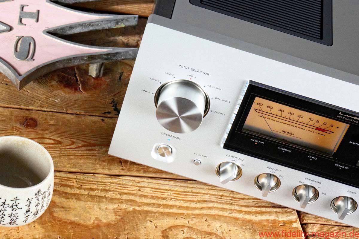 Ja, ist denn wieder 1985? Der mattsilberne Metallbolide, der da vor mir steht, sieht zumindest so aus, erinnert mit seiner fein gebürsteten Frontplatte, seinen satt klackenden Knebelknöpfen und vor allem mit den riesigen VU-Metern ganz stark an die Geräte, die bei guten Händlern zu finden waren. Nicht im Schaufenster bei der Massenware, sondern hinten im Laden, um nicht bei den falschen Leuten Begehrlichkeiten zu wecken. Wobei die Gefahr eigentlich gering war, denn zum schnell mal Mitgehenlassen waren die Verstärker aus dem Hause Luxman schon immer um einiges zu schwer, daran hat sich bis heute auch nichts geändert. Als ich zu Hause kurzerhand den Herkules spielte und den Luxman ganz alleine vom Tisch auf das Rack wuchtete, beschwerte sich mein Rücken noch Tage später über das, was ich ihm zugemutet hatte: rund 30 Kilo Transistorverstärker, noch massiger, als es die solide Optik vermuten ließe.