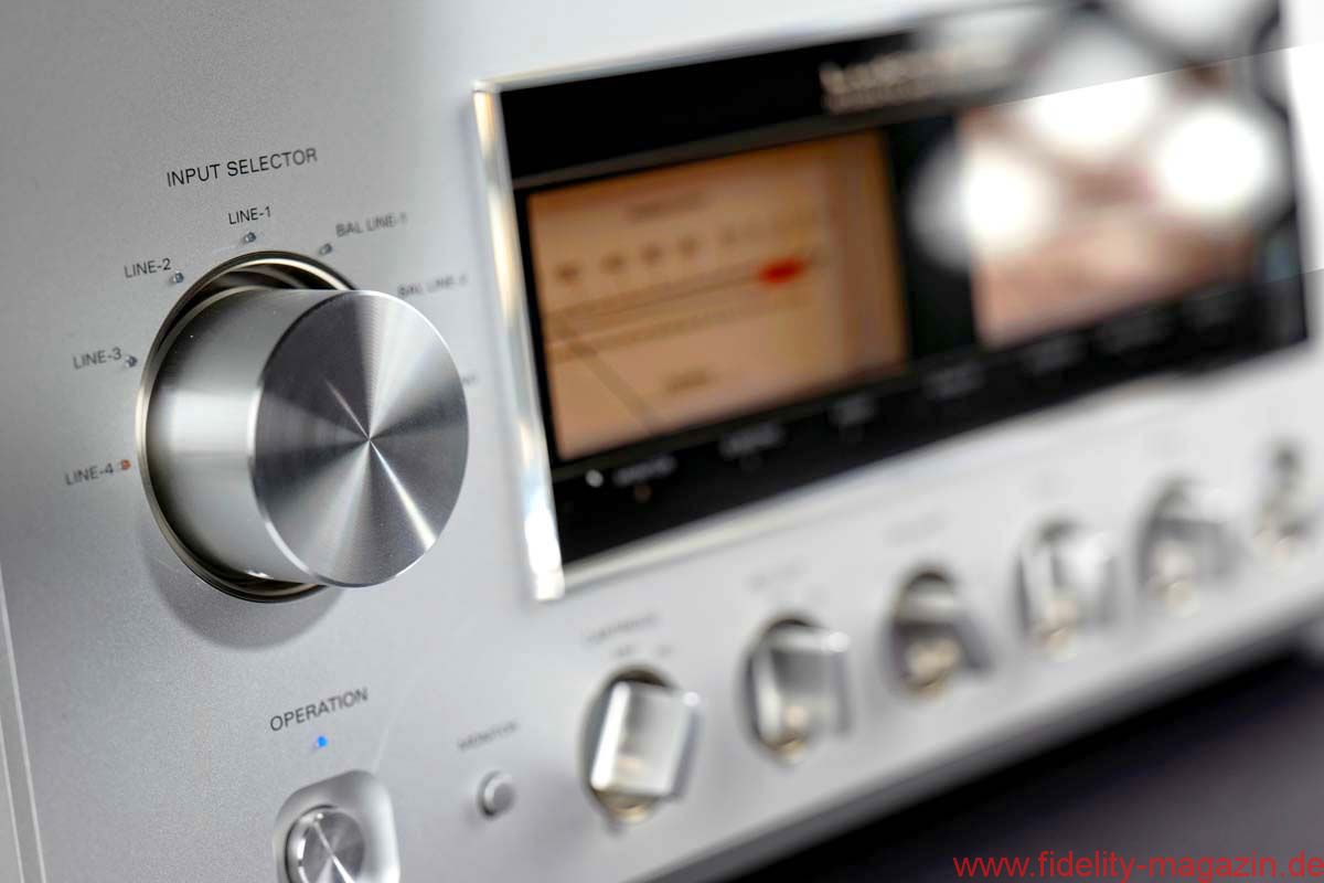 Wobei das Leisehören mit diesem Verstärker schon deshalb sehr gut gelingt, weil er über Ausstattungsdetails verfügt, die heute zumindest in High-End-Gefilden fast schon verpönt erscheinen, zum Beispiel eine Klangregelung. Und über einen Balanceregler. Und sogar – jetzt wird es aber richtig retro – über eine Loudnesstaste. Zur Erinnerung für meine Generation und als Erklärstück für die später Geborenen: Das ist eine Schaltung, die bei geringeren Lautstärken Höhen und Bässe moderat anhebt, um auch bei nachbarinnenfreundlichen Pegeln noch einen einigermaßen „richtigen“ Höreindruck zu liefern. Andererseits reicht ein Knopfdruck auf der handlichen Alu-Fernbedienung oder am feisten Frontpanel des Amps, um das komplette Klangregel-Gedöns schlagartig aus dem Signalweg zu fegen – „Line Straight“ heißt das Zauberwort aller Highender. Und weil auch die Beleuchtung der beiden großen Zeigerinstrumente klangverschlechternde (oder wenigstens irrlichternde) Wirkung haben könnte, lässt diese sich ebenfalls via „Remote Control Unit“ abschalten.