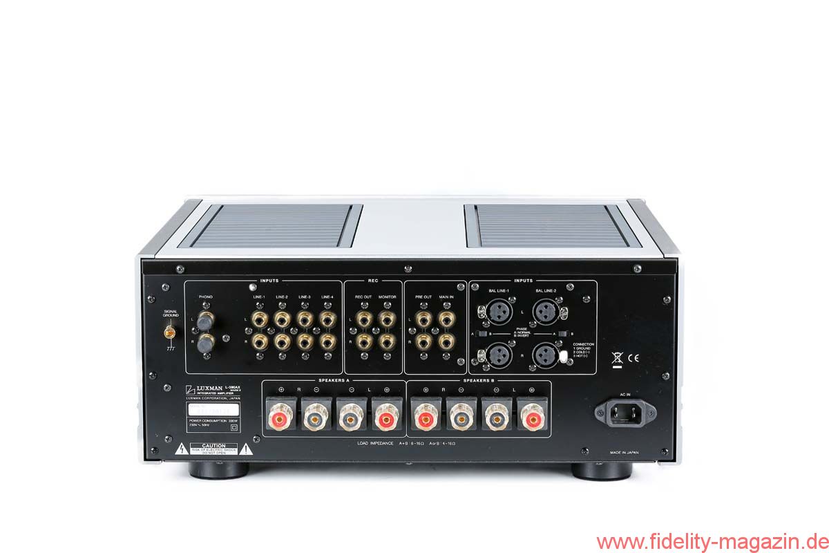 Sogar einen ausgezeichnet klingenden Phonozweig für MM und MC hat der Luxman L-590-AXII – ein separater Phonovorverstärker wird damit zwar nicht vollends obsolet, ist aber eine Investition, die noch eine ganze Weile wird warten können. Das vorläufig gesparte Geld steckt man besser in ausgezeichnete Quellen, denn der Luxman quittiert jede noch so kleine Verbesserung des analogen oder digitalen Frontends prompt mit Optimierung der eigenen Performance. Auch auf der anderen Seite sollte man nicht sparen: Es ist kein Fehler, diesen 9000-Euro-Premiumverstärker mit Spitzenklasse-Schallwandlern zu verbandeln. Andererseits treibt er aber auch vergleichsweise preiswerte Lautsprecher zu ungeahnten Leistungen an. Die kleine B&W-Standbox 683 S2 (siehe an anderer Stelle in dieser FIDELITY) klingt mit ihm groß, stattlich, voluminös – und präsentiert ein völlig von den Boxen losgelöstes Klangbild, wie man es ansonsten eher von guten Magneto- oder Elektrostaten kennt.