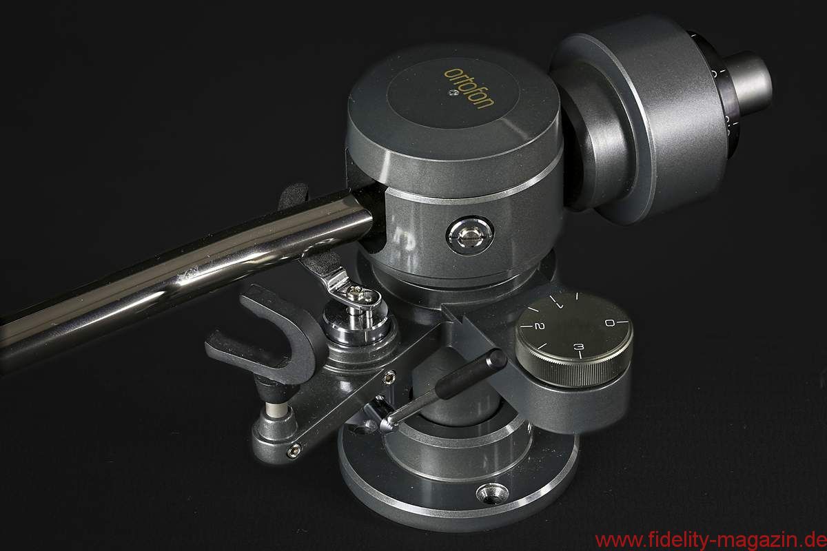 Die Antiskating-Einstellung am 210er ist konventionell, aber bequem mittels eines Federmechanismus gelöst. Eine präzise Justage sollte freilich anhand einer Testplatte erfolgen, ebenso wie für die Einstellung der Auflagekraft ausschließlich eine elektronische Waage benutzt werden sollte; die Skalierung am Gegengewicht taugt – wie immer bei statisch auszubalancierenden Tonarmen – bestenfalls als Orientierungshilfe. Sind innerhalb des angegebenen Auflagekraft-Bereichs schließlich 70 µm Abtastfähigkeit erreicht, sollte man es dabei belassen, mehr ist mit so einem „harten“ System wie dem 95th Anniversary erfahrungsgemäß nicht drin.