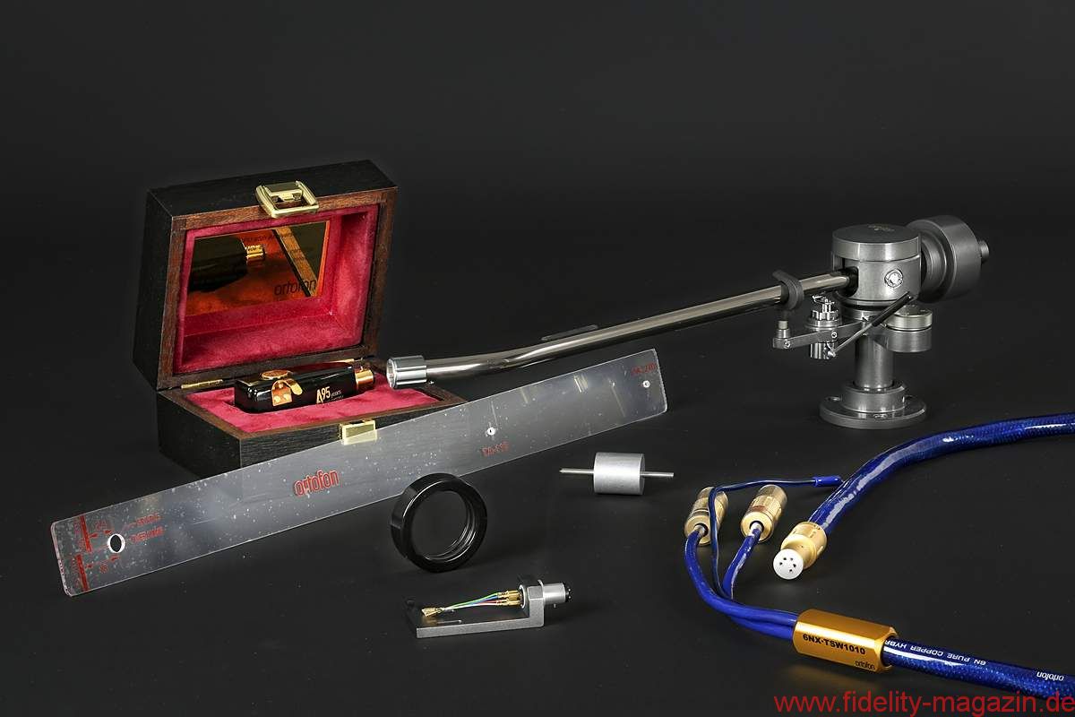 Glasklar, dass für eine so schwere Tondose beileibe nicht jeder Tonarm infrage kommt. Wer sich mit einem SPU beschäftigen möchte, der muss sicherstellen, dass ein mindestens mittelschwerer, besser schwerer Tonarm das Gewicht des Tonabnehmers auch ausbalancieren kann. Das ist kein Problem für Ortofons „langen“ Tonarm TA-210, ein statisch ausbalancierter, wunderschön gefertigter Tonarm mit SME-Anschluss (Bajonett). Er vermag bereits mit dem Standard-Gegengewicht 28 Gramm auszubalancieren, sogar noch deutlich mehr ginge mit einem aufsteckbaren Zusatz-Gegengewicht, das im Falle des SPU A95 aber nicht einmal nötig ist. Dieser Tonarm ist, um das jetzt salopp zu formulieren, ein riesengroßer massiver, halbkilo-schwerer Prügel mit einer effektiven Länge von 329 Millimetern. Tatsächlich sollte man sich bei so einem Ensemble nicht nur Gedanken darüber machen, ob ein langer Arm auf das Laufwerk passt, sondern vielleicht auch darüber, ob etwa ein Subchassis-Spieler mit dem Gesamtgewicht fertigwird …