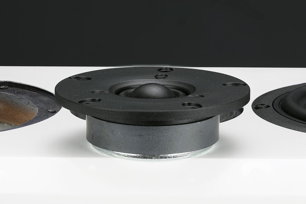 Da Entwickler Gerd Lommersum die fünf Chassis pro Box in D’Appolito-Anordnung in die schmale Schallwand pflanzt und den Lautsprecherkorpus bewusst nach hinten geneigt konzipiert hat, haben Laufzeitdifferenzen bei der Phonar Veritas p10 Next keine Chance. Auch ohne die Verwendung von Koaxtreibern kommt Lommersum dem Ideal einer Punktschallquelle vergleichsweise nahe – was für scharf umrissene, plastisch durchgezeichnete Räume sorgt. Dabei verzichtet man bei Phonar bewusst auf ungewöhnliche Exotenchassis. Nachdem Gerd Lommersum in Deutschland auch für den Vertrieb von ScanSpeak verantwortlich ist, bediente er sich für den Hochtöner im Regal des renommierten Herstellers hochwertiger Treiber und kombinierte ihn mit bewährten Konus-Chassis von Peerless. „Lommersum ist ein Phänomen, denn er kann den Klang eines Lautsprechers anhand von rosa Rauschen beurteilen“, schwärmt Kai Henningsen von den Fähigkeiten seines langjährigen Geschäftspartners, den er als das „Master Mind“ von Phonar bezeichnet.